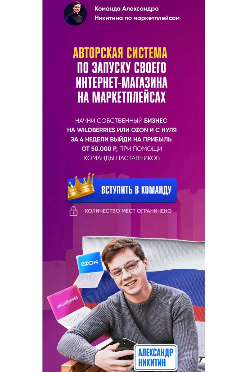 Авторская система по запуску своего интернет-магазина на маркетплейсах. Александр Никитин