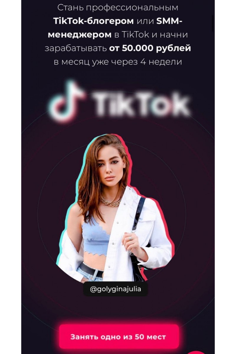 Хакни TikTokНаучись снимать крутые видео, зарабатывать на новой digital-площадке, продвигать бизнес и привлекать бесплатную аудиторию в Instagram.Твои супер способности после прохождения курса:Научишься правильно создавать страничку в TikTokУзнаешь, фишки и секреты используют популярные блогеры с самыми быстрорастущими аккаунтами и научишься их применятьУзнаешь, как создаются видео-миллионники любой тематики. И освоишь видео-монтаж: базовый и сложныйУзнаешь, как создать свой личный бренд и выделяться среди конкурентовНаучишься продвигать свой бизнес или бизнес заказчика и получать бесплатный дополнительный трафик клиентовУзнаешь, как работает приложение и получишь полный разбор всего функционалаНаучишься переливать бесплатную аудиторию из ТikTok в Instagram, Telegram и YouTubeНаучишься создавать качественный контент и наращивать аудиториюНаучишься быстро монетизировать свой блог и начнешь зарабатывать первые деньгиВедёт курс:- Блогер TikTok , собравший за 4 месяца 4.000.000 аудиторию- Спикер форумов, семинаров и тренингов- Создатель курсов и марафонов по TikTok- Instagram блогер- Наставник ТОП-Insta блогеров в TikTok- Участник закрытой программы "Развитие талантов" от TikTok