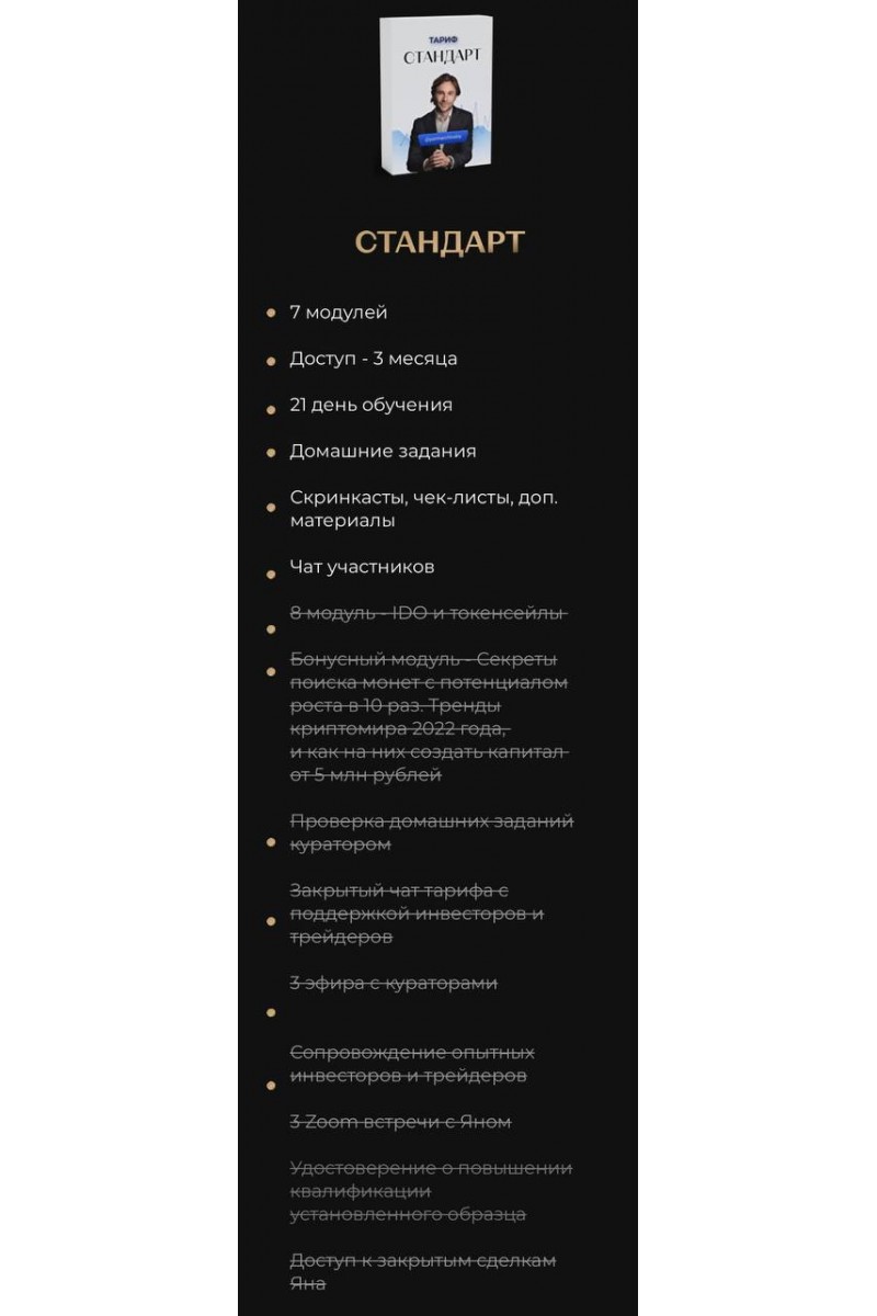Инвестиции в криптовалюту. Тариф Стандарт. Ян Марчинский, yanmarchinskiy