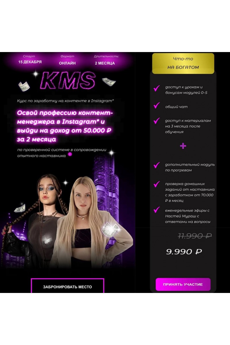 KMS. Курс по заработку на контенте в Instagram. Аркуша, Настя Мураш