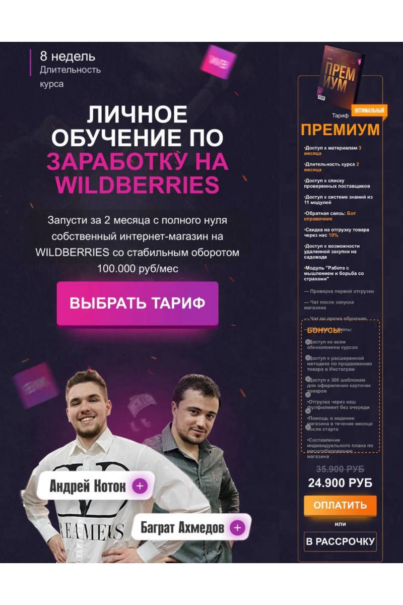 Личное обучение по заработку на Wildberries. Тариф Премиум. Андрей Коток, Баграт Ахмедов