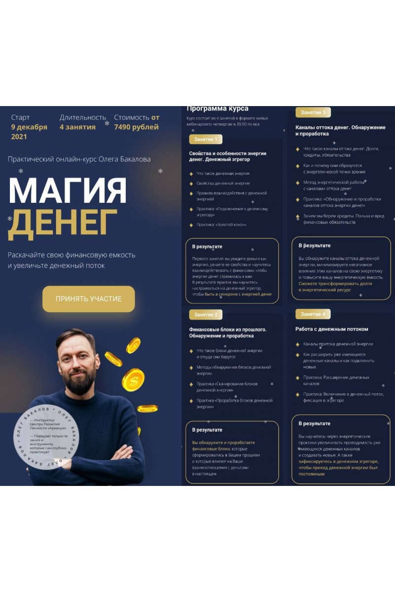 ВЕСЬ МИР СОСТОИТ ИЗ ЭНЕРГИЙМы окружены множеством энергий с разнообразными свойствами и особенностями.Энергия денег - не исключение.Незнание принципов взаимодействия с ней влечет за собой такие проблемы как: долги, неумение удерживать деньги, невозможность выйти на больший уровень дохода, нестабильное финансовое положение, бессознательное “избегание” больших денег.Понимая свойства и особенности энергии денег, мы можем взаимодействовать с ней более эффективно и притягивать финансовый поток легко и с удовольствием.ЭТОТ КУРС ДЛЯ ВАС, ЕСЛИ ВЫ:интуитивно чувствуете, что деньги - энергия, но не знаете принципов эффективного взаимодействия с нейнедовольны своим финансовым положением и уровнем доходане можете брать деньги за свою работу, или вы чувствуете что не заслужили этих денегчувствуете, что достигли финансового потолка, а прикладываемые усилия не приносят желаемого ростапогрязли в кредитах и долгах и не знаете, как от них избавитьсяощущаете, что деньги словно утекают сквозь пальцы, и что каналы оттока денежной энергии только увеличиваютсяустали жить в режиме "выживания" и хотите получать деньги с легкостьюзамечаете, что ваши убеждения относительно денег мешают вашим доходамуже прочитали много книг о том, как стать богатым, но до сих пор не получили результатНА РЕЗУЛЬТАТЕ КУРСА ВЫ:узнаете, что такое денежная энергия, и по каким законам она существуетсможете использовать эти принципы для эффективного привлечения энергии денег в свою жизньнастроитесь на денежную энергию и денежный эгрегорнаучитесь всегда быть «на волне» денег и увеличите свои финансовые возможностиосвоите энергетические техники работы с долгами, кредитами и другими каналами оттока денежной энергиисможете проработать эти энергетические блоки, которые мешают энергии денег наполнять вашу жизньнаучитесь использовать принцип притяжения, чтобы привлечь в свою жизнь желаемые возможности