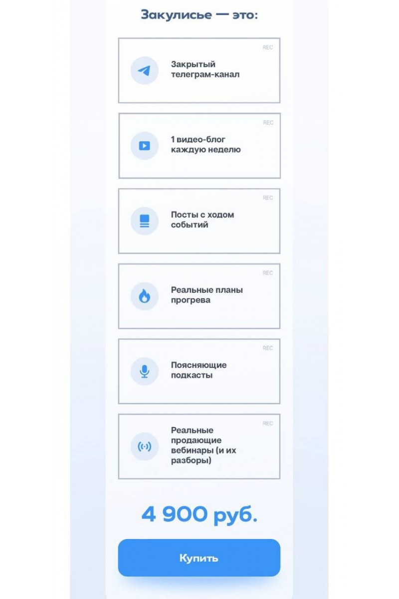 Обучающее реалити шоу по запускам в Инстаграм от Михаила Тимочко, которыйЗапустил своих курсов на 3 млн $+Смотри в реальном времени как я делаю 2 запуска и показываю всю внутрянку в формате видео-блогаГлавное, что ты получишь:Подробные примеры как сделать запуск (готовое решение)Мое мышление и видение в запускахЯ помог сотням людей начать зарабатывать на запускахИ когда я спрашиваю учеников «что больше всего зашло на курсе?», 6 из 10 отвечают, что разборы моих запусков, в которых я с точностью до каждой сторис показываю как делал запуск.Теория — это хорошо, но иногда хочется просто скопировать что-то проверенное.Впереди у меня два запускаПродюсерскийС блогером с 200 000 охватов в КазахстанеОжидания:от 10 000 000 руб. до 30 000 000 руб.СвойФормула Запуска 3.0Ожидания:от 20 000 000 руб. до 60 000 000 руб.А что если я буду показывать тебе каждый шаг в запуске и объяснять почему делаю именно так?Представь, что ты можешь получить опыт этих запусков, быстро перенять мое мышление и делать также!Я буду показывать каждый шаг:Анализ аудитории и позиционированиеСоставление плана прогреваРеализация прогреваПродающий вебинарОткрытие продаж в блогеУлучшение продуктаТак, что ты врубишься и сможешь повторять даже если не имел опыта в запусках.Закулисье — это:Закрытый телеграм-канал1 видео-блог каждую неделюПосты с ходом событийРеальные планы прогреваПоясняющие подкастыРеальные продающие вебинары (и их разборы)Это будет полезно:ЭкспертамВы посмотрите как я запускаюсь и сможете применить на себе. А также получите гору инсайтов и идей.ПродюсерамВы увидите, как я работаю продюсером на запуске в Казахстане. И сможете повторить мои решения и взять себе что-то из моих прогревов.Обычным людямкоторые хотят ворваться в запускиВы увидите, что на самом деле это не так сложно и с уверенностью ворветесь в запуски.БОНУСЫЭксклюзив:Подробный разбор моего второго запуска ФЗ на 37 000 000 руб.Мини-курс«Старт в запусках»