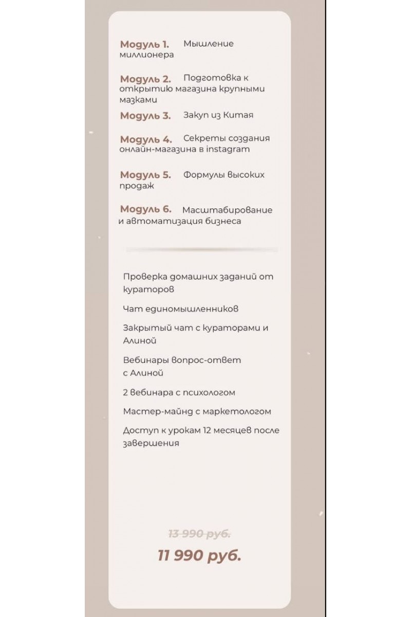 Курс "Бизнес с Китаем" это возможность :— Открыть свое дело, работать удаленно— Совмещать свою работу с другими сферами жизни— Увеличить свой доход в 2-3 раза за несколько месяцев— Не иметь "потолка"Что будет на курсе?9 обучающих видеоуроков- Изучим несколько китайских площадок, в том числе мелкооптовые сайты.- Пошагово научимся работать с каждым сайтом- Узнаем о байере и посреднике- Разберемся в логистике- Посчитаем доставку- Где искать копии LUXОткрытие магазина- Как выбрать свою нишу- Какие товары пользуются спросом- Совместные закупки, интернет-магазин или сразу шоурум- Сколько вложений необходимо для старта- Что нужно знать новичкам- Юридические вопросы- Как анализировать конкурентовУпаковка и продвижение- Как правильно упаковать аккаунт своего магазина- Каким образом начать его продвижение- Где искать клиентов- Как правильно вести страницу- Что не следует делать в самом начале- Как анализировать рынок рекламы