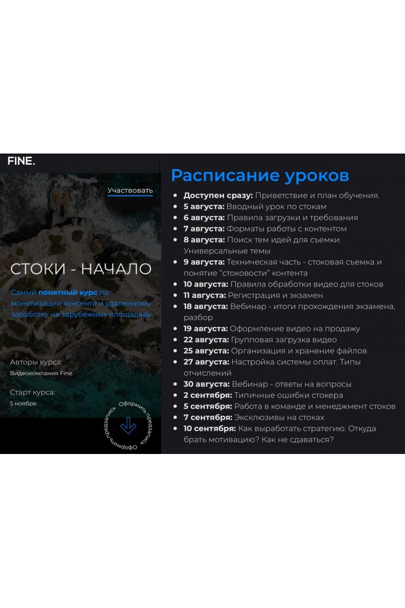 Самый понятный курс по монетизации контента и удаленному заработку на зарубежных площадкахЧто такое видеостоки?Стоки - это маркетплейсы кадров, платформы, которые продают и продвигают ваш контент. Заказчики со всего мира приобретают кадры для своих видеороликов на этих площадках.Программа:Модуль 1. Подготовка к работе на стокахМодуль 2. Загрузка и оформлениеМодуль 3. Оптимизация рабочего процессаМодуль 4. Настройка вывода средствМодуль 5. Мотивация