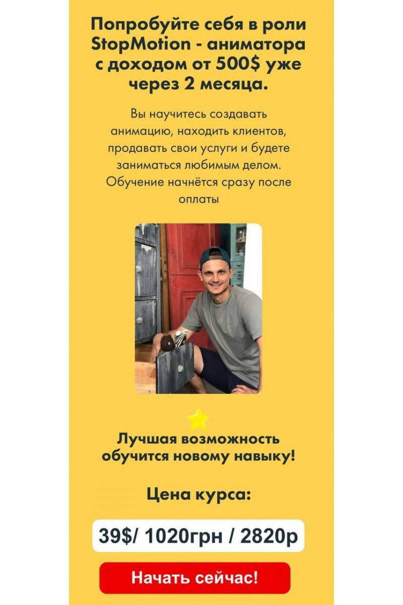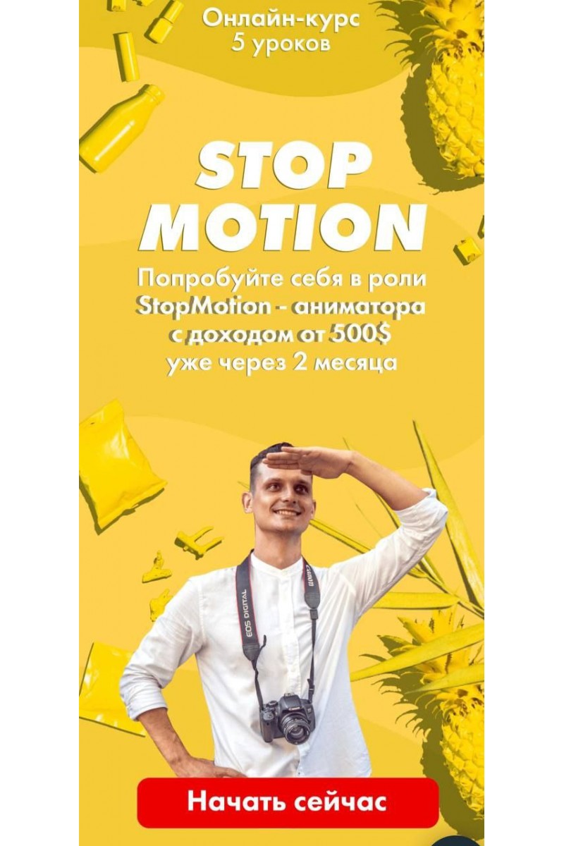 Как проходит курс?5 уроков и домашние задания, которые приходят каждый день.Урок 1. История анимации.Урок 2. Создание творческого пространства.Урок 3. Базовые принципы и съемка.Урок 4. Постпродакшн.Урок 5. Как зарабатывать на StopMotion?В каждом уроке есть практические задания. Вы сразу тренируете навык.В конце есть подробная информация, как искать клиентов и продавать свои услуги.