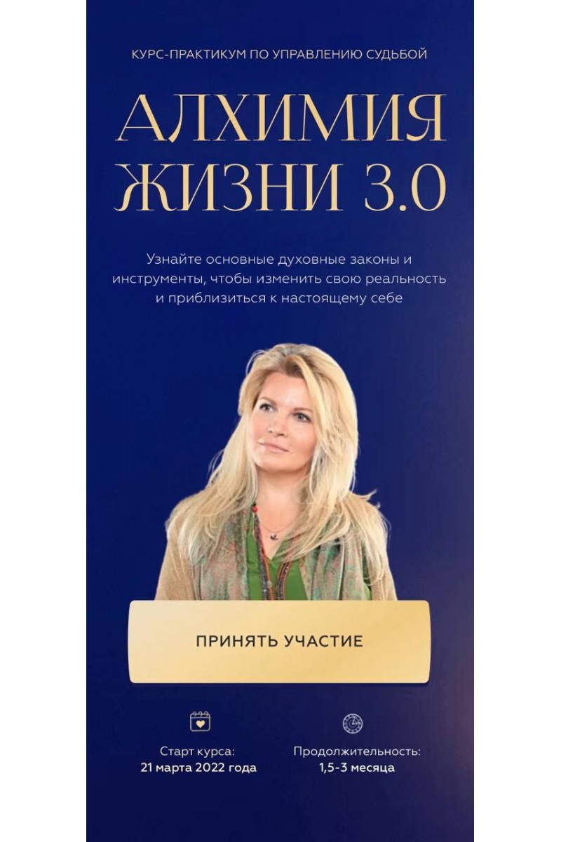 «Алхимия жизни» — это фундаментальный курс-практикум по духовной науке от Вании для тех, кто ищет глубоких изменений в разных сферах своей жизни, но не знает, с чего начать и как их осуществить.На курсе, в основе которого лежат древние сакральные знания, вы узнаете, как устроен мир, о главных законах Вселенной и том, как ими пользоваться.Вы получите конкретные инструменты для глубокой работы над собой: они помогут вам запустить трансформацию во всех сферах жизни:Сейчас как никогда каждому нужна поддержка, забота и помощь, чтобы справиться с негативными эмоциями, страхом и растерянностью.Курс «Алхимия жизни» поможет вам научиться управлять своим состоянием и уверенно смотреть в будущее, невзирая на обстоятельства. В процессе обучения вы найдёте ответы на самые важные вопросы.