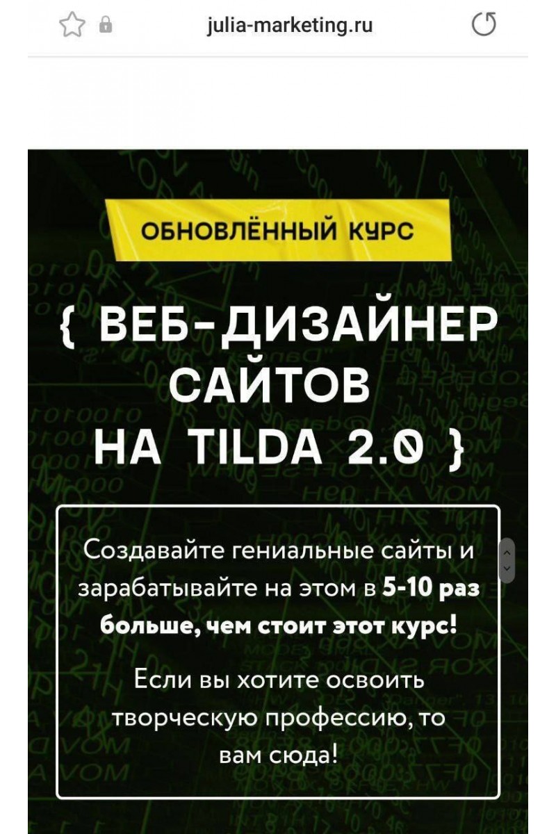 Веб-дизайнер сайтов на Tilda 2.0. Тариф Самостоятельный. Алена Волкова, Julia Marketing