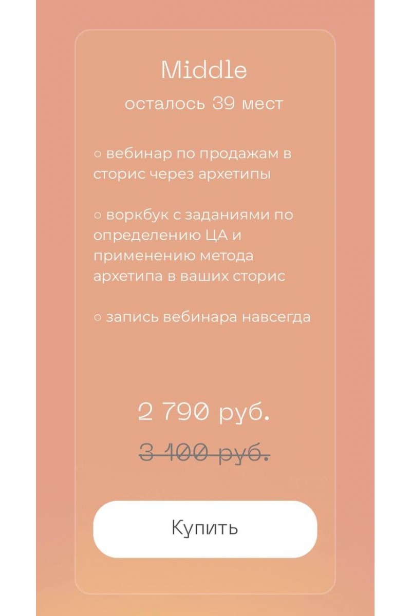Уже продаете в сторис, но прибыль не растет и как будто чего-то не хватает?Чувствуете выгорание от запусков курсов, наставничества, консультаций?Нет понимания, как отстроиться от конкурентов, усилить свой личный бренд и продавать только на высокие чеки?Найдите свою уникальность, отстройтесь от конкурентов и начните продавать в сторис стабильно и дорого с помощью метода архетиповю!Архетипы — это подсознательные образы - универсальные символы, существующие в коллективном бессознательномСогласно теории К.Г. Юнга существует 12 архетиповЗачем нужны архетипы в сторис?Архетипы — понимание своей уникальности и потребностей своей ЦА- тесная связь с аудиторией и сильный личный бренд- стабильные продажи на высокие чеки