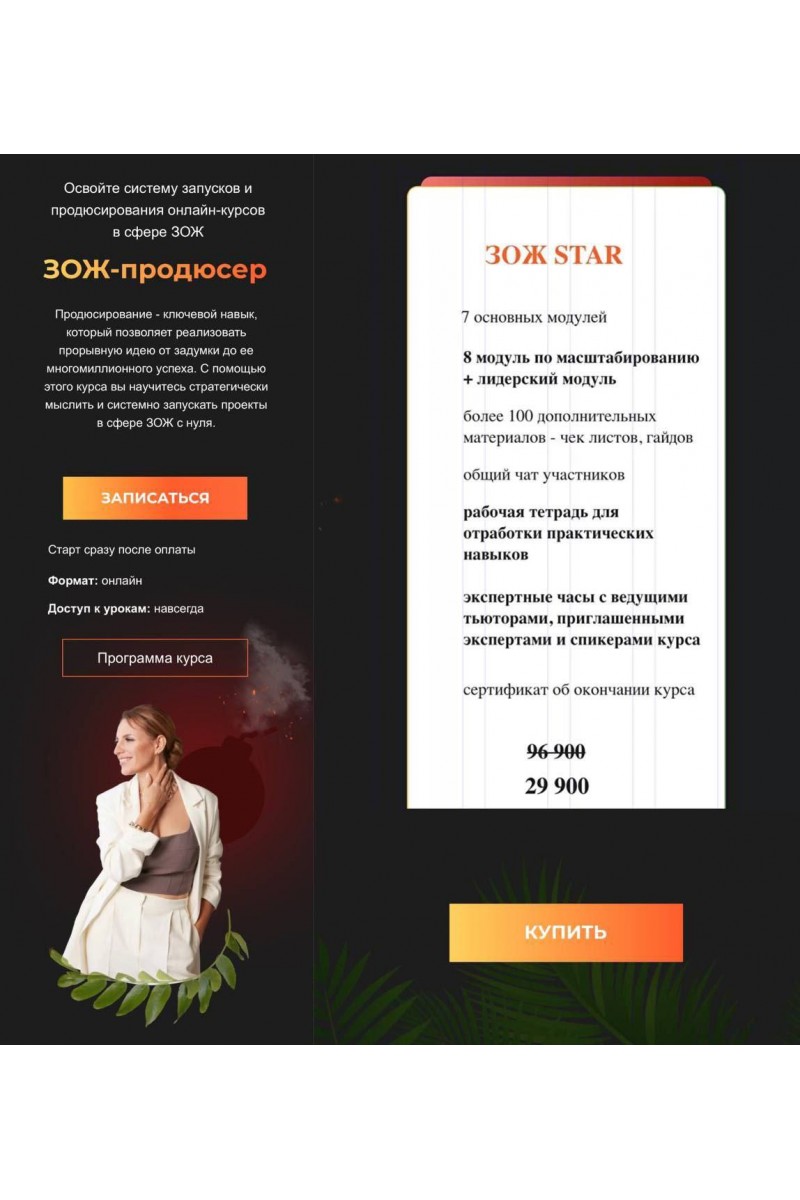 Продюсирование - ключевой навык, который позволяет реализовать прорывную идею от задумки до ее многомиллионного успеха.С помощью этого курса вы научитесь стратегически мыслить и системно запускать проекты в сфере ЗОЖ с нуляКОМУ ПОДОЙДЕТ КУРС? СПЕЦИАЛИСТАМ В СФЕРЕ ЗОЖнутрициологам и представителям смежных профессийпроизводителям ЗОЖ-продуктовэкспертам самооздоровлениянетрадиционной медициныврачам и специалистамВАШ РЕЗУЛЬТАТ:научитесь продвигать свои услуги или услуги своих коллег и получать доход от 100 тыс. в месяцузнаете особенности работы в сфере ЗОЖ, увеличите свой чек и сможете запускать уникальные продуктыВ ИТОГЕ НА КУРСЕ ВЫ ПОЛУЧИТЕ РАБОТАЮЩУЮ СТРАТЕГИЮ, КОТОРАЯ ПОЗВОЛИТ ВАМПродвигать: себя, врачей, нутрициологов, диетологов, других экспертов в сфере ЗОЖМасштабировать: продукты, курсы, проекты, бизнесыПроводить: разборы, консультации, коуч-сессии, марафоныА еще раскроете в себе новые возможности, станете увереннее в себе и получите мощный заряд мотивации!!ПОЧЕМУ “ЗОЖ-ПРОДЮСЕР”?Персональный разбор кейсов и наставничествоОкружение, которое “горит” нутрициологией и ЗОЖ в целомРеальный опыт топовых экспертов маркетингаПервый курс для продвижения в сфере ЗОЖ на рынке