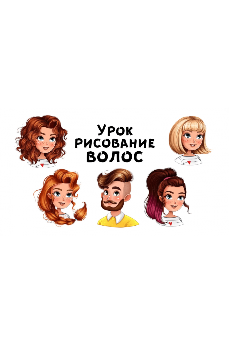 Алгоритм рисования 4х женских причесок с разным цветом и типом волос ( блондинка + прямые волосы, шатенка + кудри, рыжая + коса, брюнетка + хвост + цветной градиент).