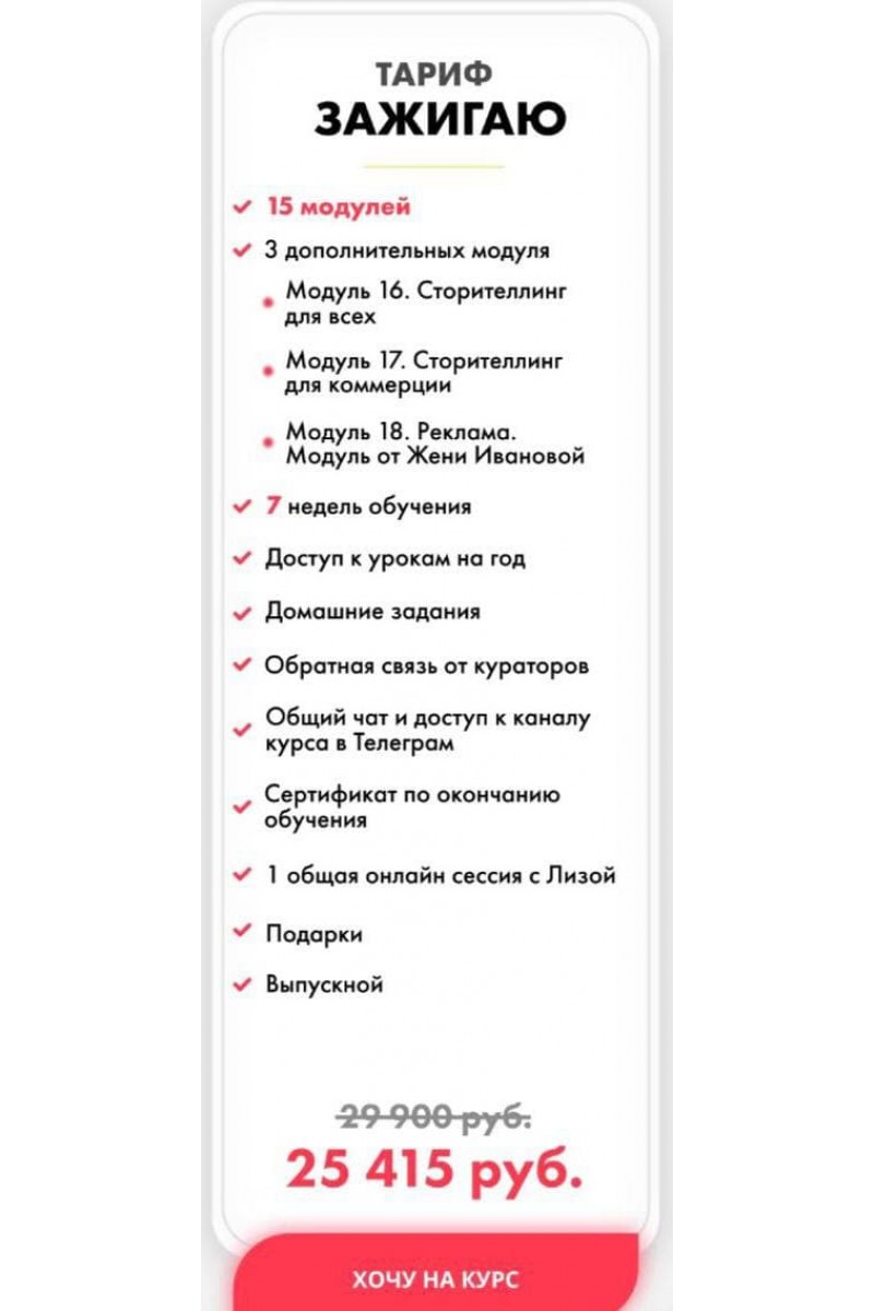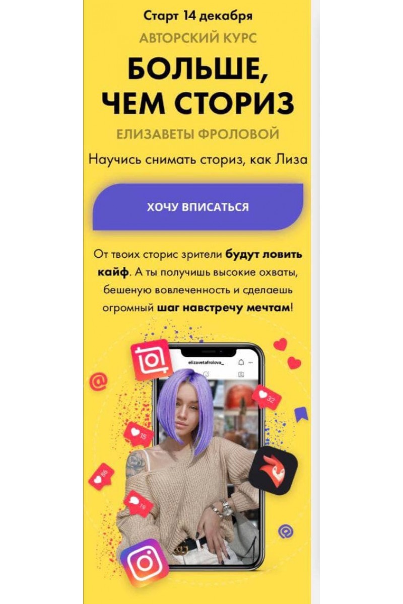 УЖЕ ЧЕРЕЗ 7 НЕДЕЛЬ ТЫПЕРЕСТАНЕШЬ БОЯТЬСЯ И ВПАДАТЬ В СТУПОРпри виде камеры телефонаНАУЧИШЬСЯ ПЛЕВАТЬ НА МНЕНИЕ ОКРУЖАЮЩИХведь ты будешь генерить такой крутой контент, а они просто завидуютПОЙМЕШЬ, ОТКУДА БРАТЬ ИДЕИи перестанешь задаваться постоянным вопросом, что выложитьНАЩУПАЕШЬ СВОЮ УНИКАЛЬНОСТЬи свой собственный стильСДЕЛАЕШЬ ТАК, ЧТО ТВОИ СТОРИЗ БУДУТ ДОСМАТРИВАТЬа охваты и вовлеченность взлетят в космосНАЧНЕШЬ ЗАРАБАТЫВАТЬмного, просто и быстро, да так, чтобы на мечту хватилоСТАНЕШЬ ПРОСТО БОГОМ КОНТЕНТАтвои идеи начнут подворовывать, а Директ засыпать вопросами:«Каааак ты это делаешь?»ПОЙМЕШЬ, ЧТО ТЫ УНИКАЛЕН И ИНТЕРЕСЕНдаже если ты живешь в маленьком городе, у каждого своя историяСТАНЕШЬ СПЕЦИАЛИСТОМ НОВОГО УРОВНЯне просто научишься красиво оформлять контент для своего клиента, но сможешь закрывать весь комплекс его потребностей для роста продаж через сториз