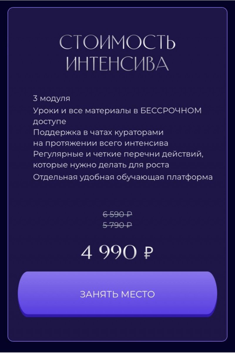 Модуль 1ЦЕЛЕВАЯ АУДИТОРИЯКто наша целевая аудитория и какой контент ей нужен?Как определить наиболее прибыльную нишу сейчас?Отстраиваемся от конкурентов в 2022 годуМодуль 2 ПРОДВИЖЕНИЕ В INSTAGRAMБесплатные методы: взаимопиары и другие коллаборацииБесплатные методы: комментингПлатные методы: реклама у блогеровмодуль 3 ПРОДВИЖЕНИЕ В TELEGRAM И В VKONTAKTEУпаковка и продвижение Телеграм-каналаУпаковка и продвижение страницы VKКак совмещать разные каналы и все успевать