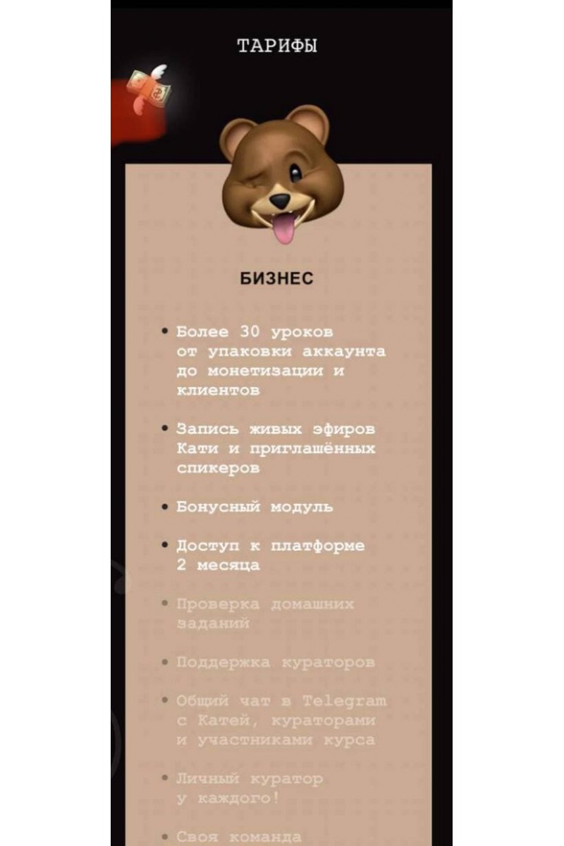 КОМУ НУЖНО БЫТЬ НА КУРСЕ?НОВИЧОКНАЧИНАЮЩИЙ БЛОГЕРЭКСПЕРТ / БИЗНЕСБОГ БЛОГИНГАХочешь привлекать клиентов через инстаграмм и увеличить их количествоНет подписчиковХочешь качнуть свой блог с 0 до первых результатовВечная больУпали охваты. Истории, посты никто не смотрит и не видитВсё вроде знаю,но «уперся в потолок»и ничего не работает эффективно