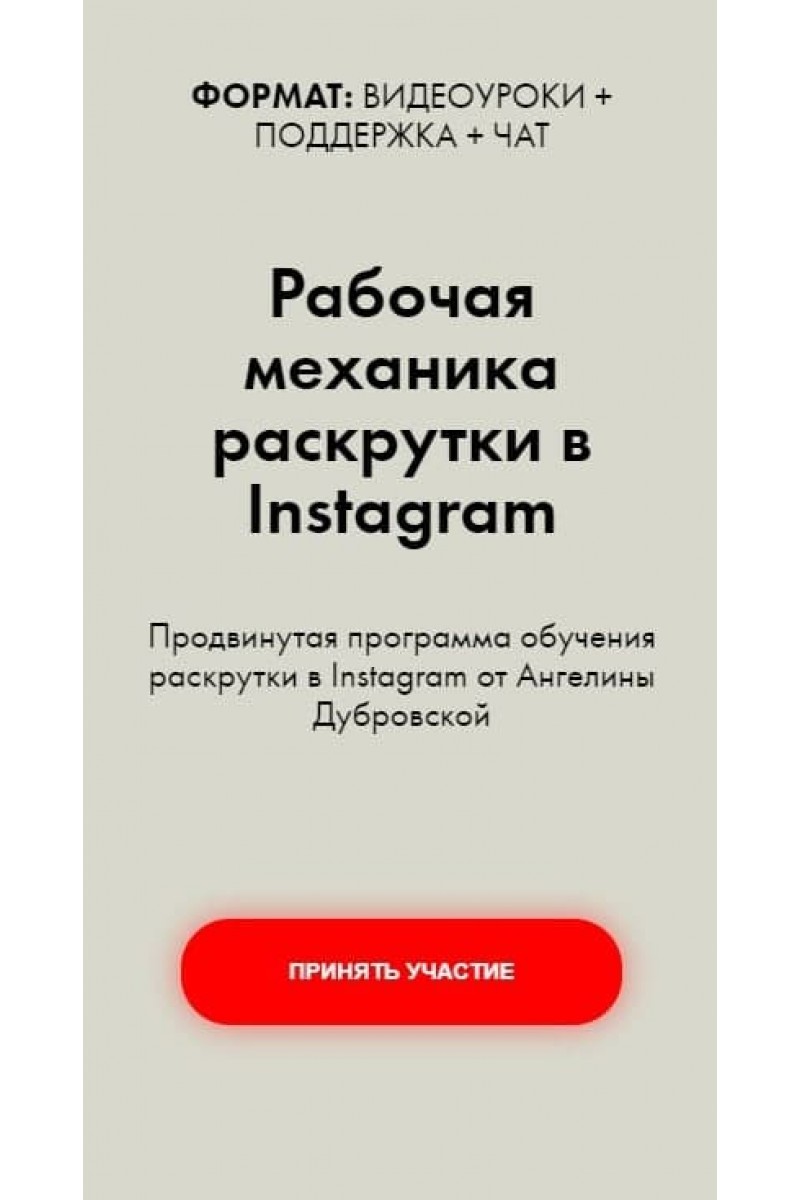 Рабочая механика раскрутки в Instagram. Тариф - Расширенный. Ангелина Дубровская