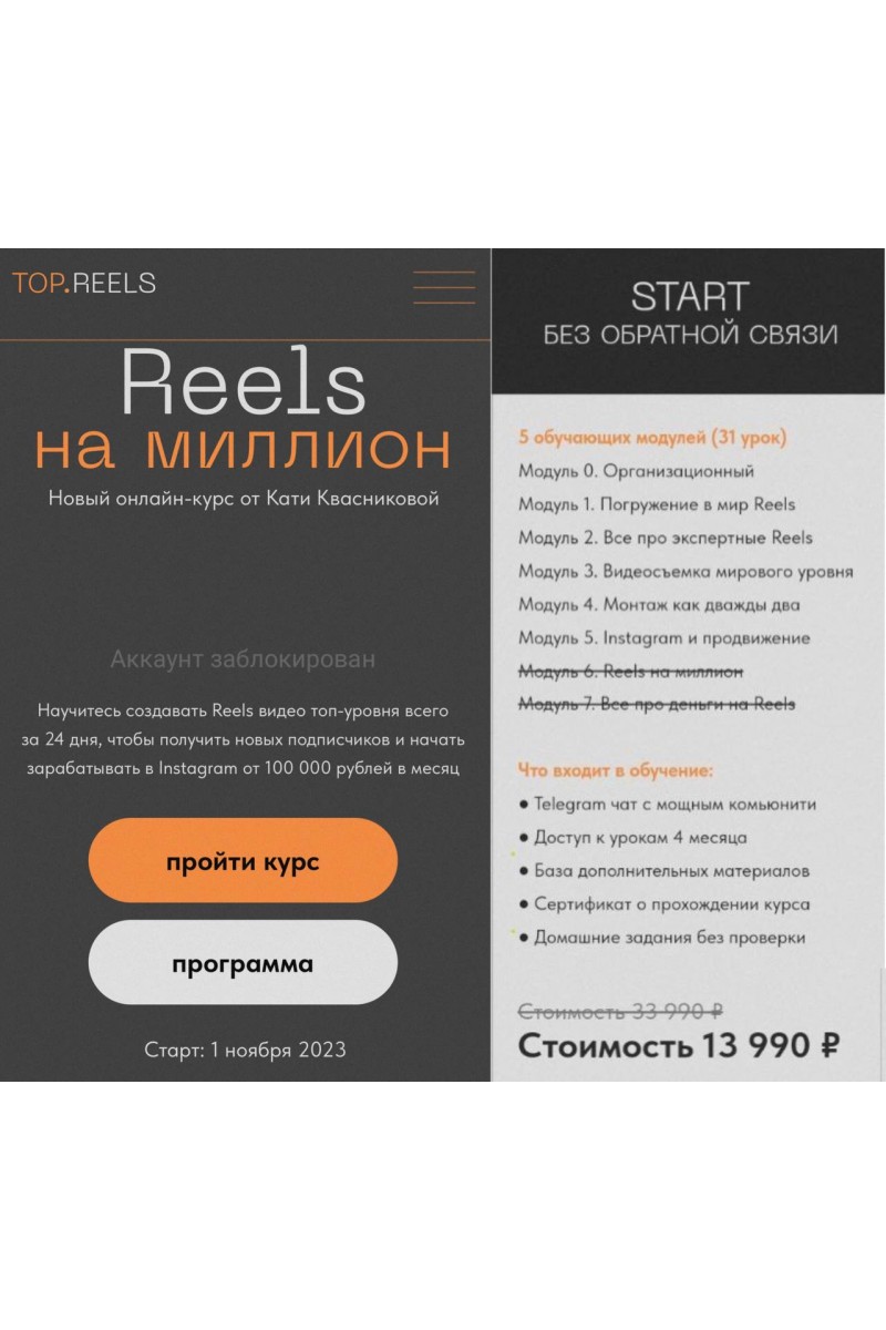 Reels на миллион. Тариф Start без обратной связи. Катя Квасникова