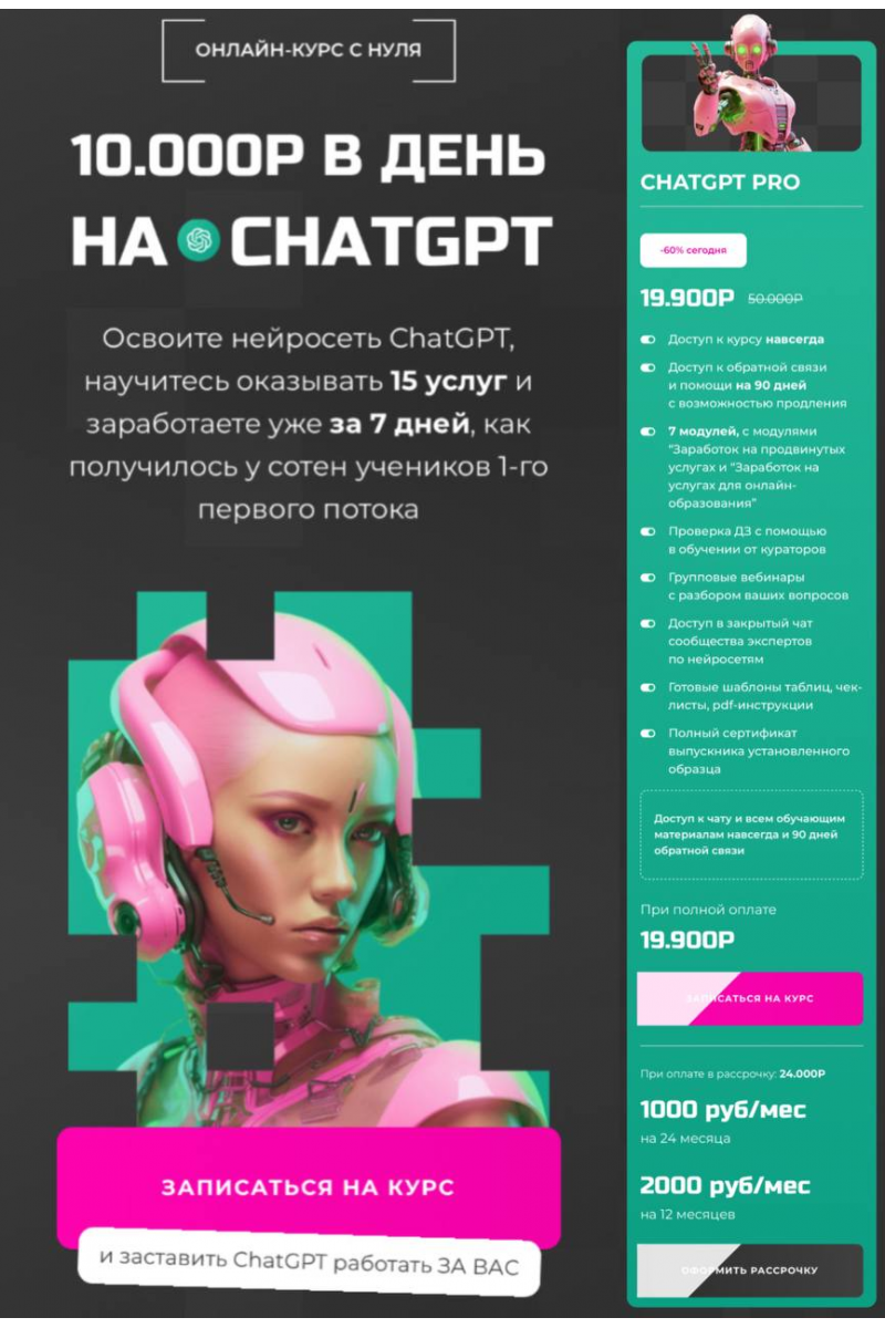 Освоите нейросеть ChatGPT, научитесь оказывать 15 услуг и заработаете уже за 7 дней, как получилось у сотен учеников 1-го первого потока