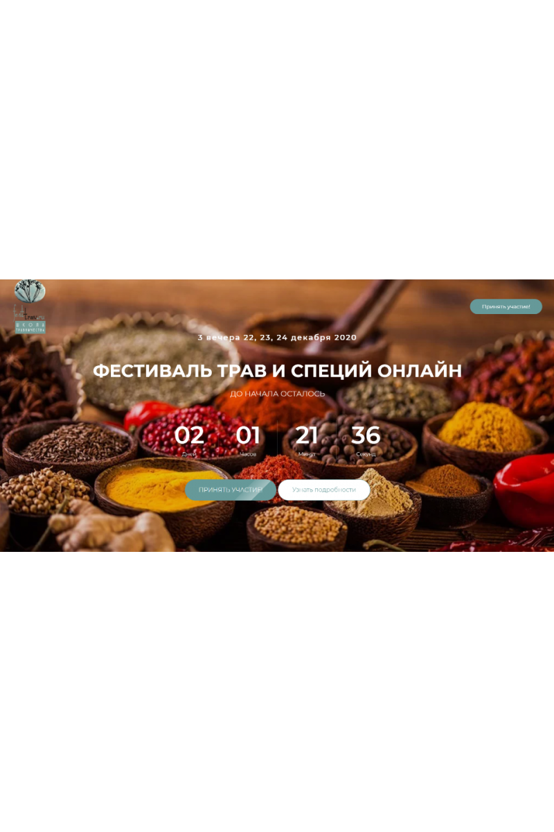 Более 10 практикующих экспертов в сфере травничества, фитотерапии, тибетской медицины, аюрведы, энергетических практик и, конечно, специй и пряностей!