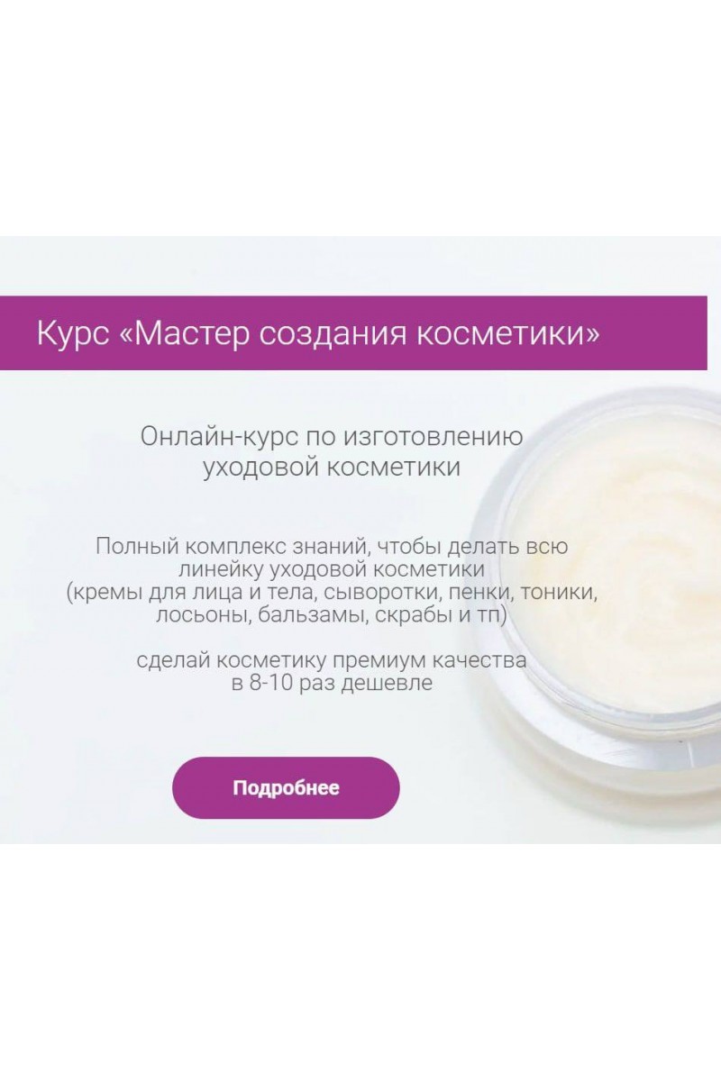 Модуль 1: Вводный1. Знакомство2. Краткий обзор курса.3. Техника безопасности, гигиена4. Инструменты и материалы5. ПоставщикиМодуль 2: Все о Коже1. Кожа как важный орган2. Функции3. СтроениеМодуль 3: Масла1. Почему необходимы в косметике2. Жирно-кислый состав и свойства3. Список масел по типам кожи4. Стабильность маселРецепты, которые ты освоишь:- Масляная сыворотка для лица- Сыворотка для век- Масло для кутикулы- Взбитое масло Ши для телаМодуль 4: Эфирные Масла1. Сфера применения2. Как выбирать и хранить3. Таблица по типам кожи4. ФототоксичностьРецепты, которые ты освоишь:- Увлажняющий тоник-спрей для губ- Мятный бальзам для губ- Мятный скраб для губМодуль 5: Консерванты и Активные компоненты1. Зачем нужны, общее описание2. Список «зеленых» консервантов3. Растительные экстракты4. Наиболее популярные активные компоненты5. Процент ввода активов по возрасту и задачам6. ЭкстрактыРецепты, которые ты освоишь:- Гиалуроновая сыворотка для лица- Масляный экстракт розмарина (мацерат)- Экстракт листьев и веточек черной смородины- СГ экстракт ягод черной смородиныМодуль 6: Основы Кремоварения1. Что такое крем, зачем он нужен2. Основные компоненты крема3. Виды эмульсий* Перечень эмульгаторов для каждого вида* Особенности строения* Функции4. Прямая Эмульсия5. Обратная Эмульсия6. ГельРецепты, которые ты освоишь:- Пенка для умывания (1)- Пенка для умывания (2)Модуль 7: Гелеобразователи1. Что такое гелеобразователи2. Функции и свойство камедей, способы применения3. Симульгель, описание гелеобразователя-эмульгатора, способы примененияРецепты, которые ты освоишь:- Крем-гель на Симульгеле увлажняющий- Молочко для умывания- Гель-скраб для лицаМодуль 8: Эмульгатор для прямой эмульсии1. название эмульгатора состав, свойства2. Как работать с данным эмульгатором, особенности совместимость3. Примеры текстур эмульсий с различным процентным содержанием и комбинациями эмульгатораРецепты, которые ты освоишь:- Дневной крем для лица ( питательный, восстанавливающий)- Крем для век от отеков и кругов под глазами- Цитрусовый Крем для тела- Освежающий Крем для ногМодуль 9: Эмульгатор для обратных эмульсий.1. Название эмульгатора состав, свойства2. Как работать с данным эмульгатором, особенности совместимость3. Компоненты, стабилизирующие обратную эмульсию, консервированиеРецепты, которые ты освоишь:- Ночной крем для лица- Крем для рук- Детское молочко с Д-пантенолом