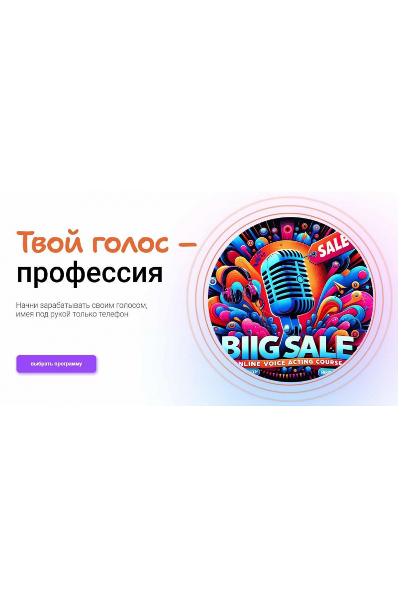 Что ты получишь Освоишь профессию диктора, и начнешь профессионально записывать и обрабатывать звук Научишься работать со специальными программы для записи, обработки и монтажа аудио Приблизишь к совершенству дикцию и дыхание Узнаешь об особенностях работы в различных нишах и научишься в них зарабатывать Как проходит обучение Пошаговые видеоуроки на платформе ГетКурс. Можно обучаться как с компьютера, так и с телефона Закрытый чат профессионалов в Телеграм для поиска новых знакомств, общения и обмена опытом Постоянная поддержка кураторов и преподавателя Практические домашние занятия, которые ты будешь выполнять на профессиональном уровне Результат Станешь профессионалом, умеющим работать со звуком и научишься записывать собственный голос Попадешь в профессиональное комьюнити, где все друг друга знают и готовы поддержать С полной уверенностью и знаниями выйдешь на рынок озвучки Сможешь продавать свои услуги или запустишь свой проект и начнешь зарабатывать