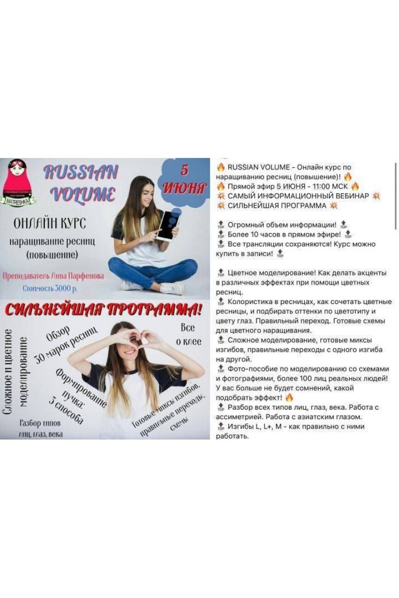 RUSSIAN VOLUME - Онлайн курс по наращиванию ресниц. Анна Парфенова