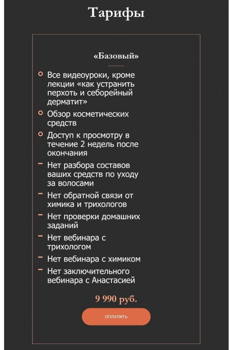 Восстановление волос. Тариф "Базовый" Анастасия Сидорова