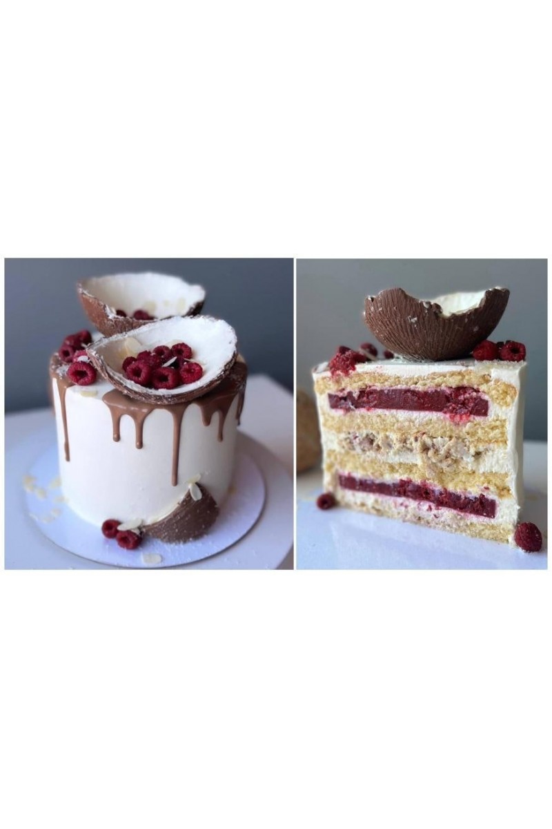 Бисквитный торт Кокос-Малина-Миндаль. Александра Голобородько, cakealeks