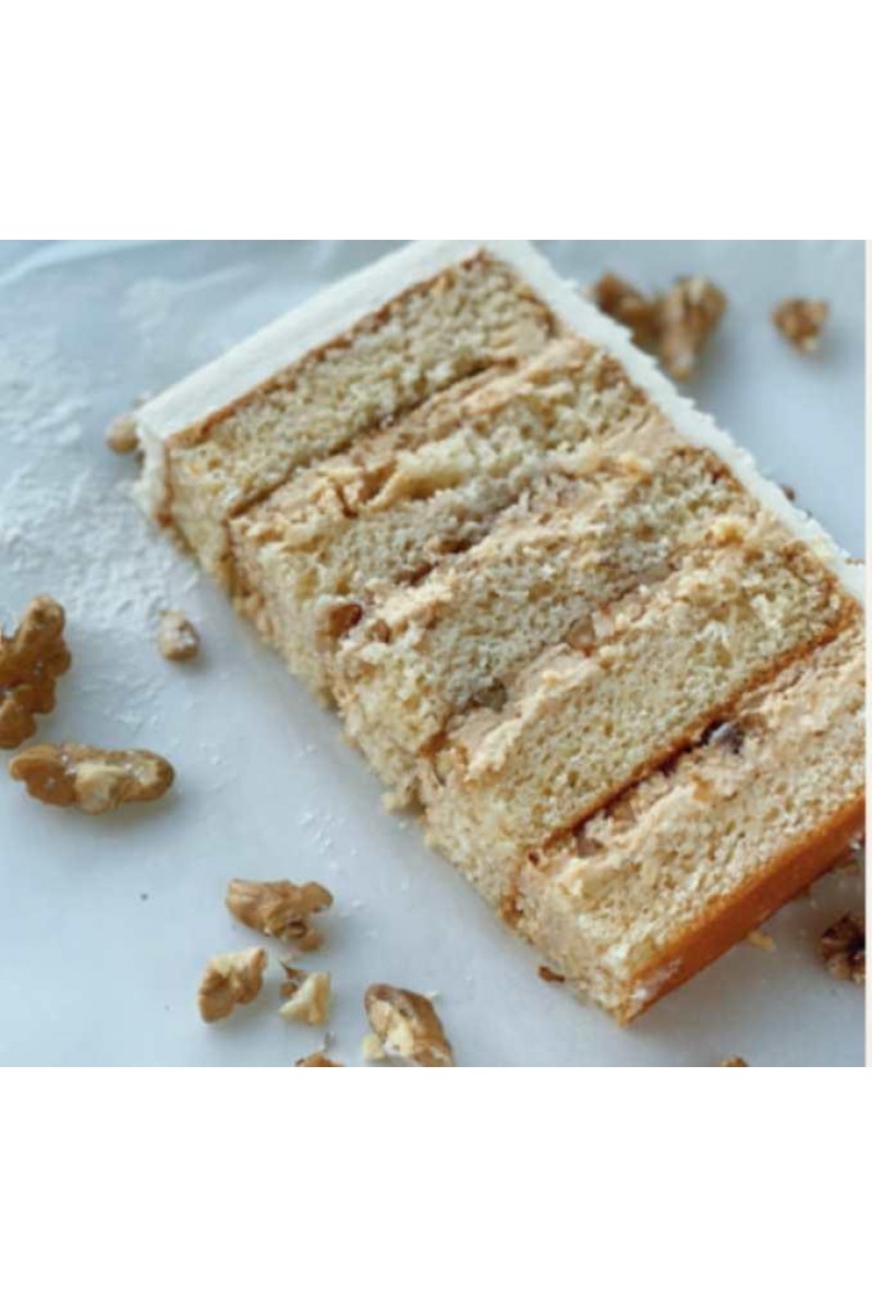 Воздушный, ванильный бисквит, нежный крем и чуть карамелизованные орешки, ванильно-молочная пропитка