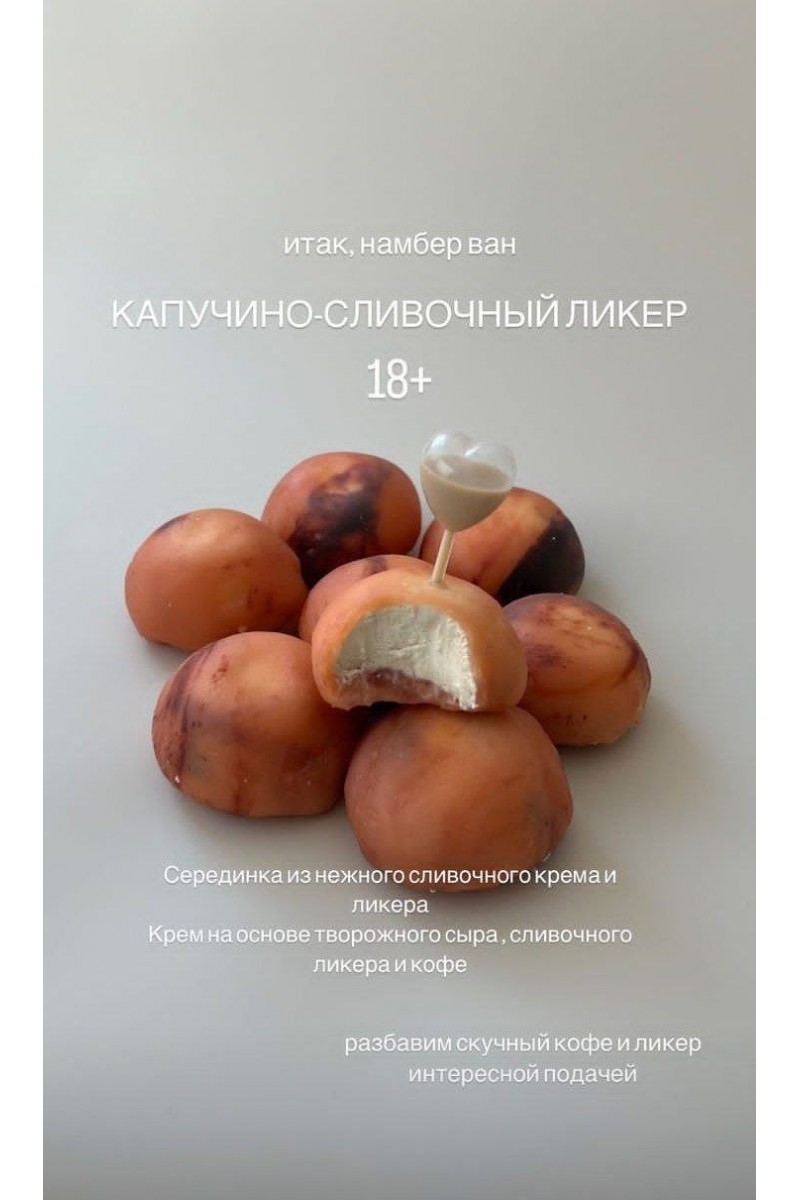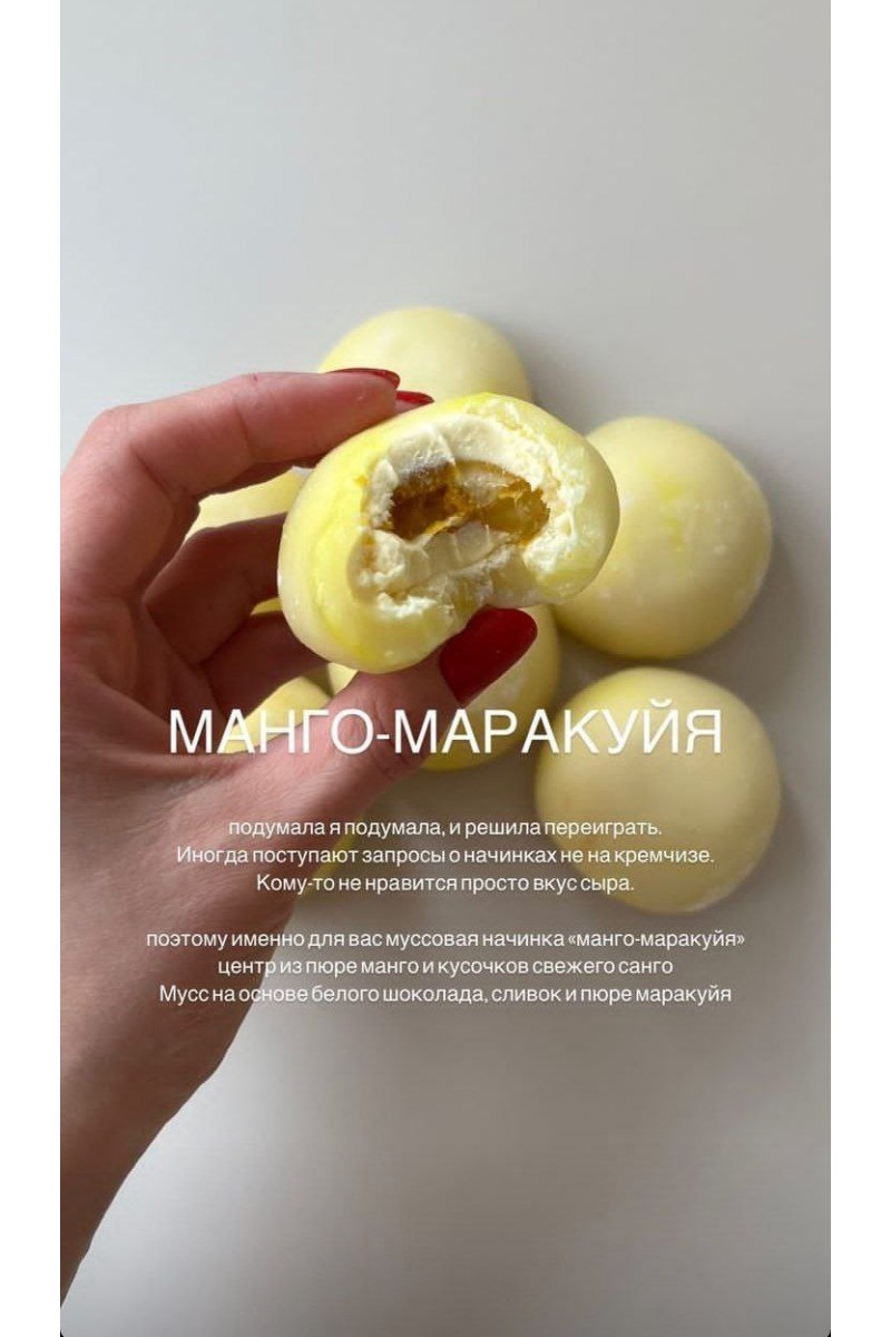 Вкусы начинок:Кофе-Бейлис (сливочный ликер)Нутелла_БананАрбуз-ДыняЯблочный штрудельКиндерСливочное кивиСмородина-лимон