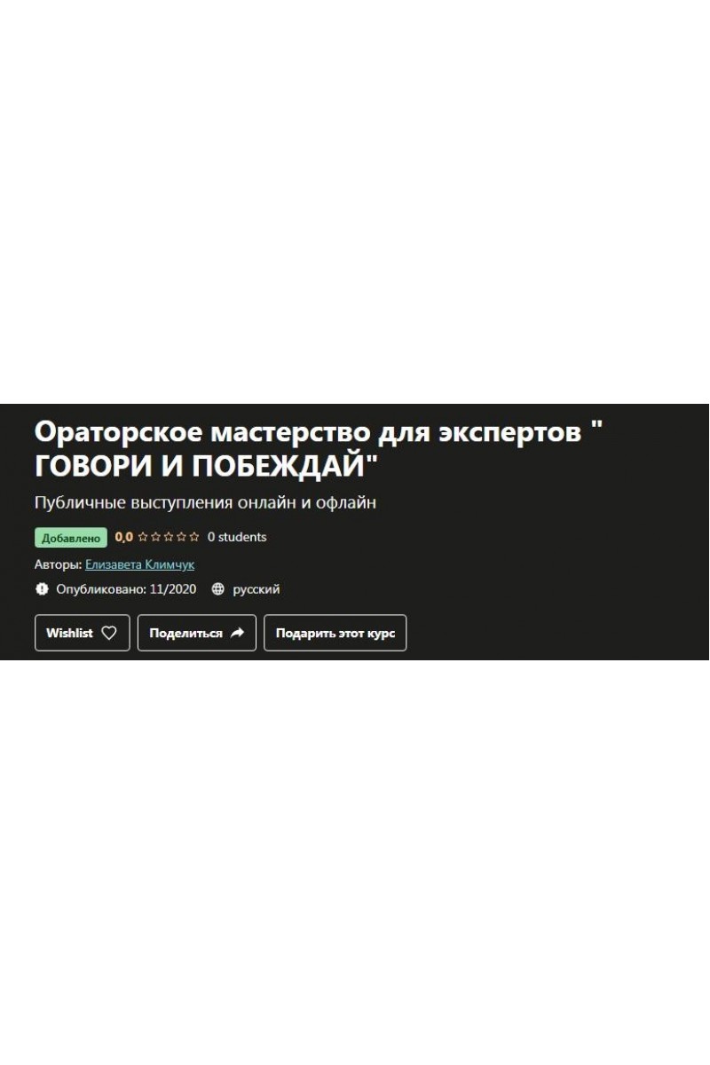 Ораторское мастерство для экспертов говори и побеждай. Елизавета Климчук, Udemy