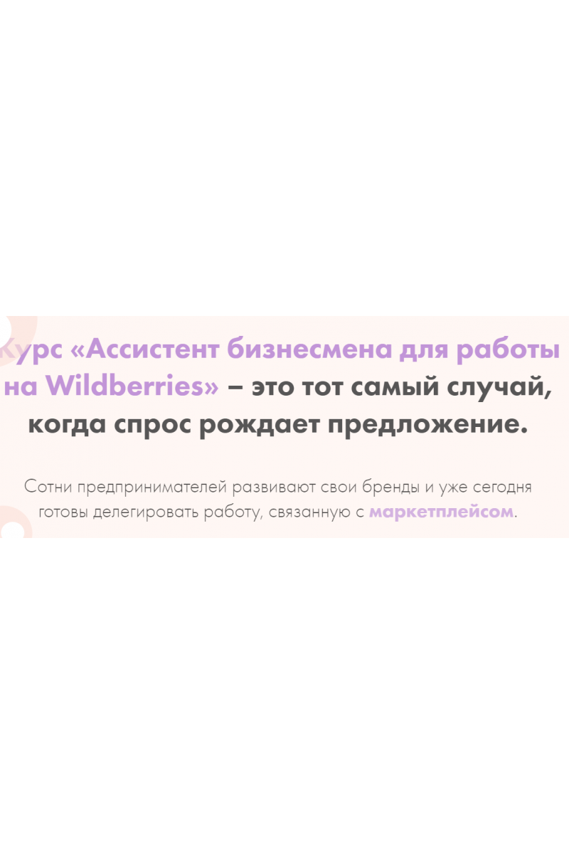 Курс «Ассистент бизнесмена для работы на Wildberries» – это тот самый случай, когда спрос рождает предложение.