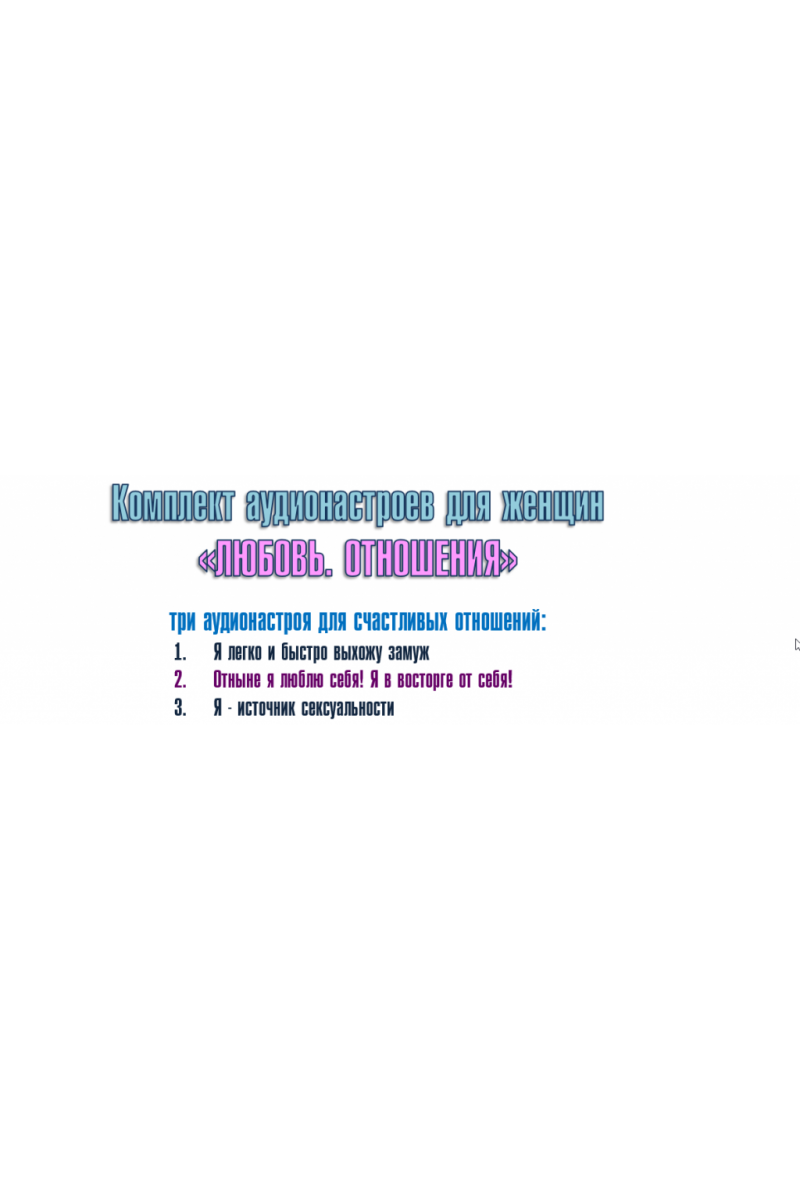 Этот настрой позволит убрать из подсознания все ограничения, блоки и страхи на тему сексуальности и окунуться в океан радости от сексуальной жизни, стать неповторимой любовницей для вашего мужчины...
