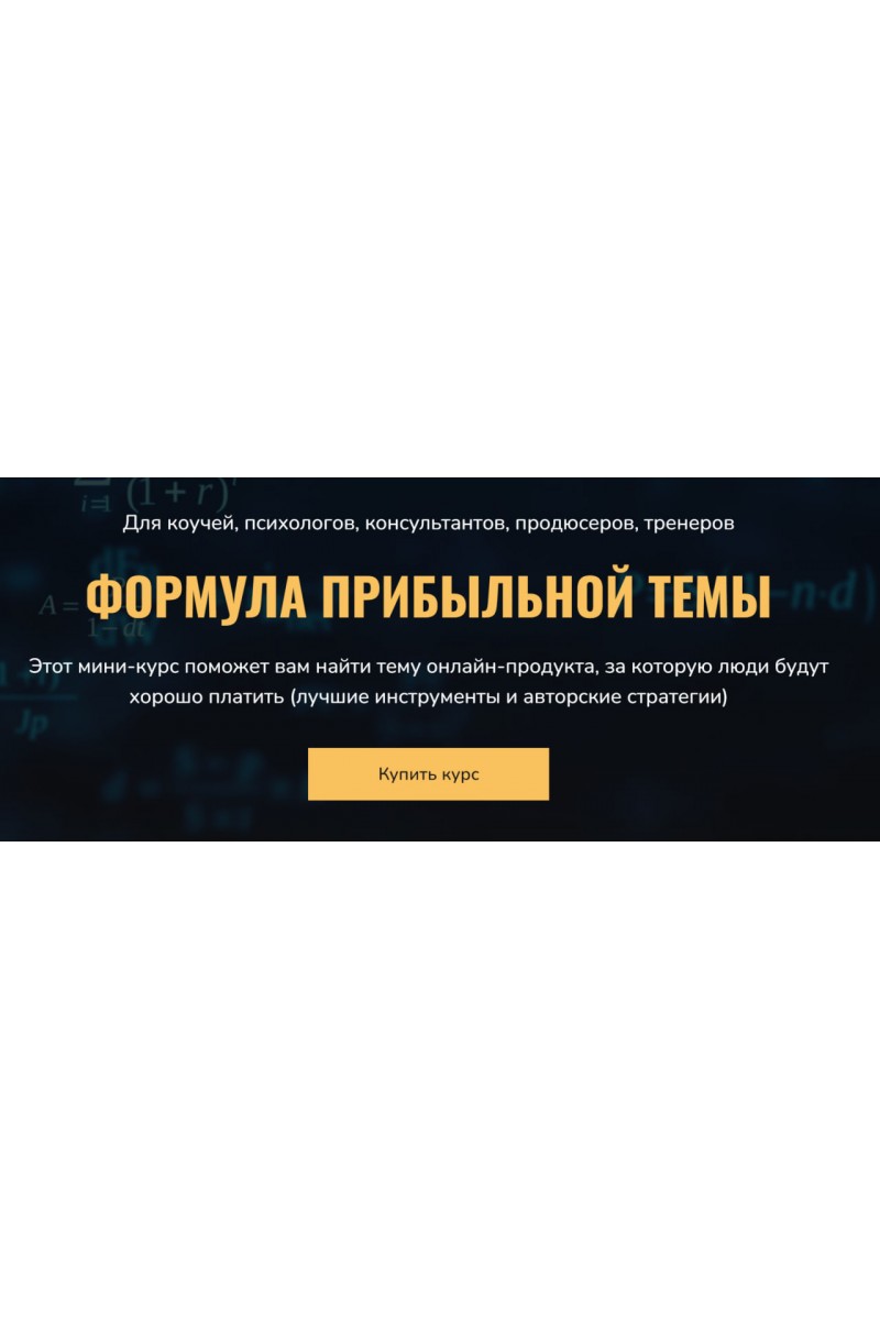 Программа мини-курса:Блок 1. Стратегии поиска темы онлайн-продуктаУрок 1. Как найти тему, если вы психолог или коуч?Урок 2. Как найти тему, если вы бизнес-консультант?Урок 3. Как найти тему, если вы астролог, таролог, нумеролог или эксперт по дизайну человека?Урок 4. Как найти тему, если вы владеете какой-то методикой трансформации (работа с родом, тета-хиллинг, созависимость, любой авторский метод и т.д.)Урок 5. Как найти тему, если вы эксперт по ЗОЖ?Урок 6. Как найти тему, если вы эксперт в теме отношений между мужчиной и женщиной?Урок 7. Как найти тему, если вы карьерный консультант?Урок 8. Как найти тему, если вы преподаете иностранный язык?Урок 9. Как найти тему, если вы обучаете сетевиков?Урок 10. Как найти тему, если вы музыкант или художник?Урок 11. Как найти тему, если вы фотограф?Урок 12. Как найти тему, если вы специалист по рекламе?Урок 13. Как найти тему, если вы блоггер?Урок 14. Как найти тему, если вы специалист по какому-либо хобби?Урок 15. Как найти тему, если вы писатель?Урок 16. Как найти тему, если вы предприниматель с большим опытом?Урок 17. Как найти тему, если вы начинаете с нуля и еще нет клиентов?Блок 2. Инструменты для поиска прибыльных тем онлайн-продуктовУрок 18. Методика №1. Ретроспективный анализУрок 19. Методика №2. Анализ закономерностейУрок 20. Методика №3. Лингвистический анализУрок 21. Методика №4. Поведенческий анализУрок 22. Методика №5. Анализ ролевых моделейУрок 23. Методика №6. Декомпозиция темыУрок 24. Методика №7. Модификация темыУрок 25. Методика №8. Кастомизация темыУрок 26. Методика №9. Сужение темыУрок 27. Методика №10. Анализ ключевых критериевБлок 3. Прибыльные темы для разных форматов онлайн-продуктовУрок 28. Как находить темы для популярных лид-магнитов (бесплатных продуктов)Урок 29. Как найти тему для бесплатного вебинара? (чтобы пришло и купило много людей)Урок 30. 3 стратегии выбора темы для бесплатного марафона (чтобы и пользу дать и люди захотели потом купить)Урок 31. Как выбрать тему для недорого микро-курса? (чтобы в маленьком продукте дать крутую ценность)Урок 32. Как разработать тему для платного авторского клуба? (чтобы его хорошо покупали, но его ведение занимало мало времени)Урок 33. 5 формул популярных тем для платных мастер-классов и интенсивов (чтобы люди легко покупали и чтобы быстро показать себя экспертом)Урок 34. 2 стратегии для выбора темы онлайн-воркшопа (для быстрого утепления базы)Урок 35. Как найти тему для флагманского продукта? (чтобы масштабировать проект и вести его чужими руками)Урок 36. 3 стратегии, чтобы найти тему для спринт-тренинга на несколько недель (чтобы давать людям быстрые крутые результаты)Урок 37. 7 стратегий, чтобы найти тему для премиальной мини-группы (чтобы не надо было долго ее продавать и платежеспособные люди хотели ее купить)Урок 38. Как выбрать тему для дорогого индивидуального коучинга? (чтобы поднять цену своего часа в разы и высвободить кучу времени)Урок 39. Как выбрать тему для экспресс-коучинга? (чтобы хорошо зарабатывать даже на маленькой базе подписчиков и продавать дорогой коучинг без кейсов)Урок 40. Как разработать тему для годовой массовой программы? (чтобы всегда было что продавать тем, кто уже все купил у вас)Автор Сергей Загородников:Основатель и руководитель интернет-проекта для коучей и консультантов CoachMarketing.ruВедущий эксперт по автоматизации продаж дорогого коучинга и консалтинг
