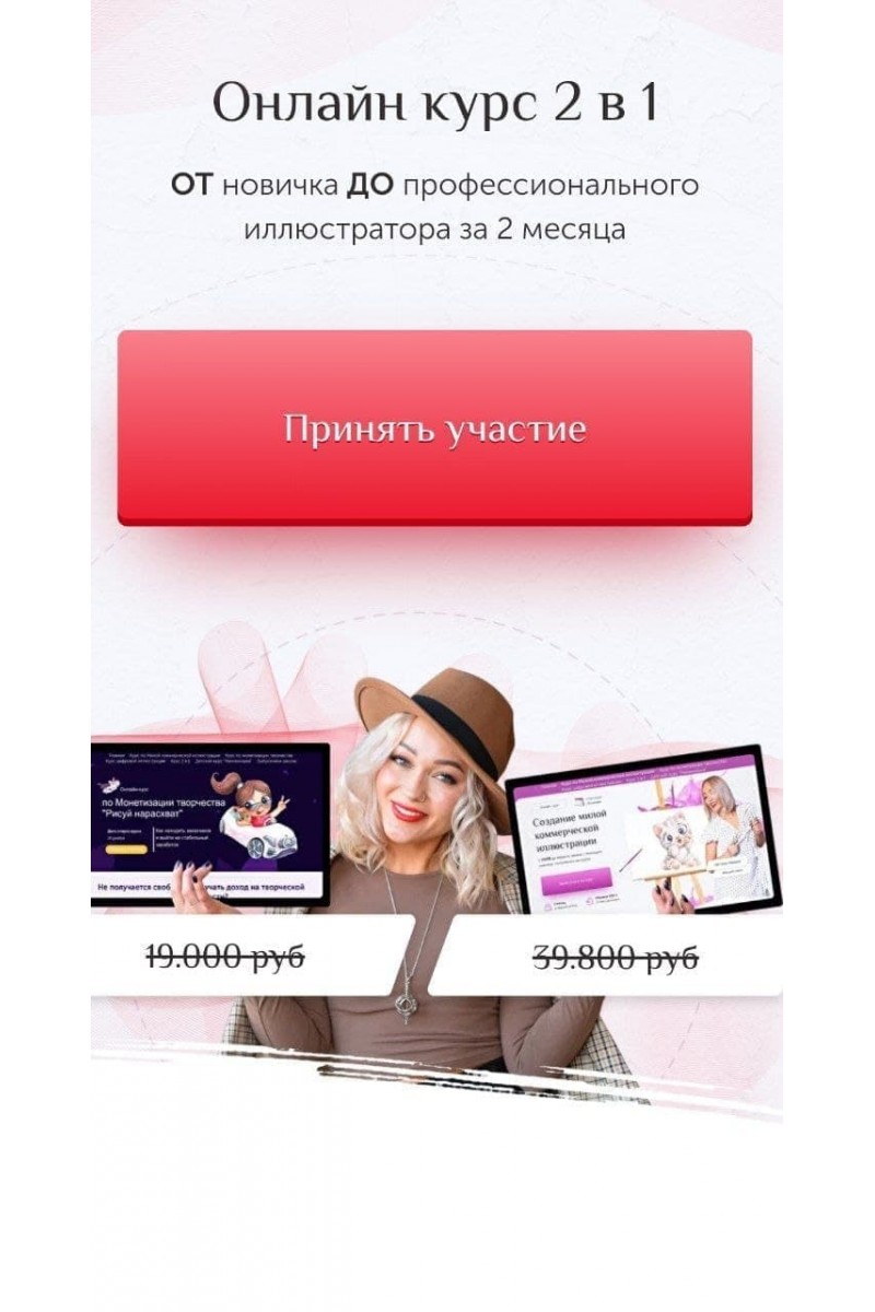 После прохождения курса ты освоишь с нуля новую профессию:Научишься создавать милые коммерческие иллюстрацииУзнаешь, как профессионально обрабатывать изображенияРазберешься, как правильно устанавливать цены на свои работыЯ расскажу о методах продвижения для иллюстраторов, и ты найдешь первых заказчиков уже на курсеВыйдешь на международный рынок, чтобы зарабатывать в долларах в разы большеЧто входит в Курс рисуй нарасхват?Вдохновение и материалыПодберете идеальные инструменты и материалы для работыНаучитесь ловить вдохновениеКомпозиция в иллюстрацииУсвоите понятие композиции и поймете, что это совсем несложноНаучитесь компоновать свои иллюстрацииЭмоции персонажаНаучитесь создавать сильный контакт со зрителем с помощью эмоций персонажаОживите свои иллюстрацииПостроение персонажаНаучитесь строить своего милого персонажа, не срисовывая!Поймете, что построение персонажа - это легко и простоЦвет в иллюстрацииНаучитесь подбирать красивые цветовые сочетания к своим иллюстрациямРазберетесь в цветовой гармонии и научитесь усиливать восприятие картинки с помощью цветаОбработка изображенийПолучите профессионально обработанные иллюстрации после прохождения урокаНаучитесь готовить иллюстрации к печати на любом носителе и для любого заказчикаОбщение с заказчикомНаучитесь общаться с заказчикамиБудете иметь готовые скрипты общения, позволяющие сэкономить время и количество правокСоздание коммерческого портфолиоНаучитесь красиво оформлять готовые работы для портфолиоУзнаете, как правильно фотографировать иллюстрации для инстаграмПостроение персонажей и эмоций ПРОНаучитесь рисовать персонажей в динамике и создавать любые сложные сюжетыСможете передавать широкую гамму сложных эмоцийЦвета в иллюстрации ПРОУглубите свои знания по работе с цветомТехнические тонкостиНаучитесь передавать объем персонажейРисовать волосыПередавать цвет кожиДелать ровные акварельные заливкиСекреты индивидуальностиНаучитесь рисовать персонажей:- Разного возраста- Разных национальностей- Научитесь рисовать руки- Научитесь рисовать аксессуарыДизайн творческой личностиУвидите свою уникальностьПоймете, какие точки роста в творчестве у вас могу бытьКак найти свой стиль?Узнаете, как найти свой собственный уникальный стильКак сделать так, чтобы заказчики дрались за тебя?Усвоите методы привлечения заказчиковСоставите скрипты общения с нимиЗвездное портфолиоСоздадите свое качественное портфолио в инстаграмСделаете личную сайт визиткуСделаете портфолио страничку на behanceЦенообразованиеРазберетесь, как поставить правильную цену на свою работуПерестанете бояться братьс заказчика деньгиНайдете пути для увеличения цены ваших работНаши страхиПерестанете бояться критикиРасслабитесь по поводу личных страхов. Неуверенности в талантах и возможностяхЛегко будете устанавливать цены на свои работыПродвижениеУзнаете как и где находить заказчиковСоздадите идеальную продажную страницу в инстаграмРазберетесь в площадках для заработка: биржах, стоках, ярмаркахНаучитесь делать рекламу в инстаграмНаучитесь работать с хэштегамиАвторское право для творцаПолучите реальные способы защиты своего творчестваВозьмете на вооружения советы опытного юристаПолучите пример скриптов, которые отправляются обидчику в слу