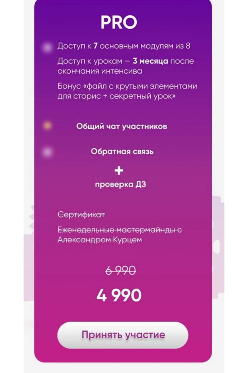 Кому подойдет этот курс:Новичкам...ты очень хочешь хорошо зарабатывать самостоятельно и не зависить от родителей.Ты не можешь найти себя..Ты закончил(а) школу/ВУЗ и не знаешь как тебе зарабатывать. На интенсиве ты познакомишься с одной интересной профессией и научишься зарабатывать много.Начинающим сторимейкерам/фрилансерам..Ты уже познакомилась с фрилансом, но твои результаты тебя не устраивают и ты хочешь выйти на больший доход.