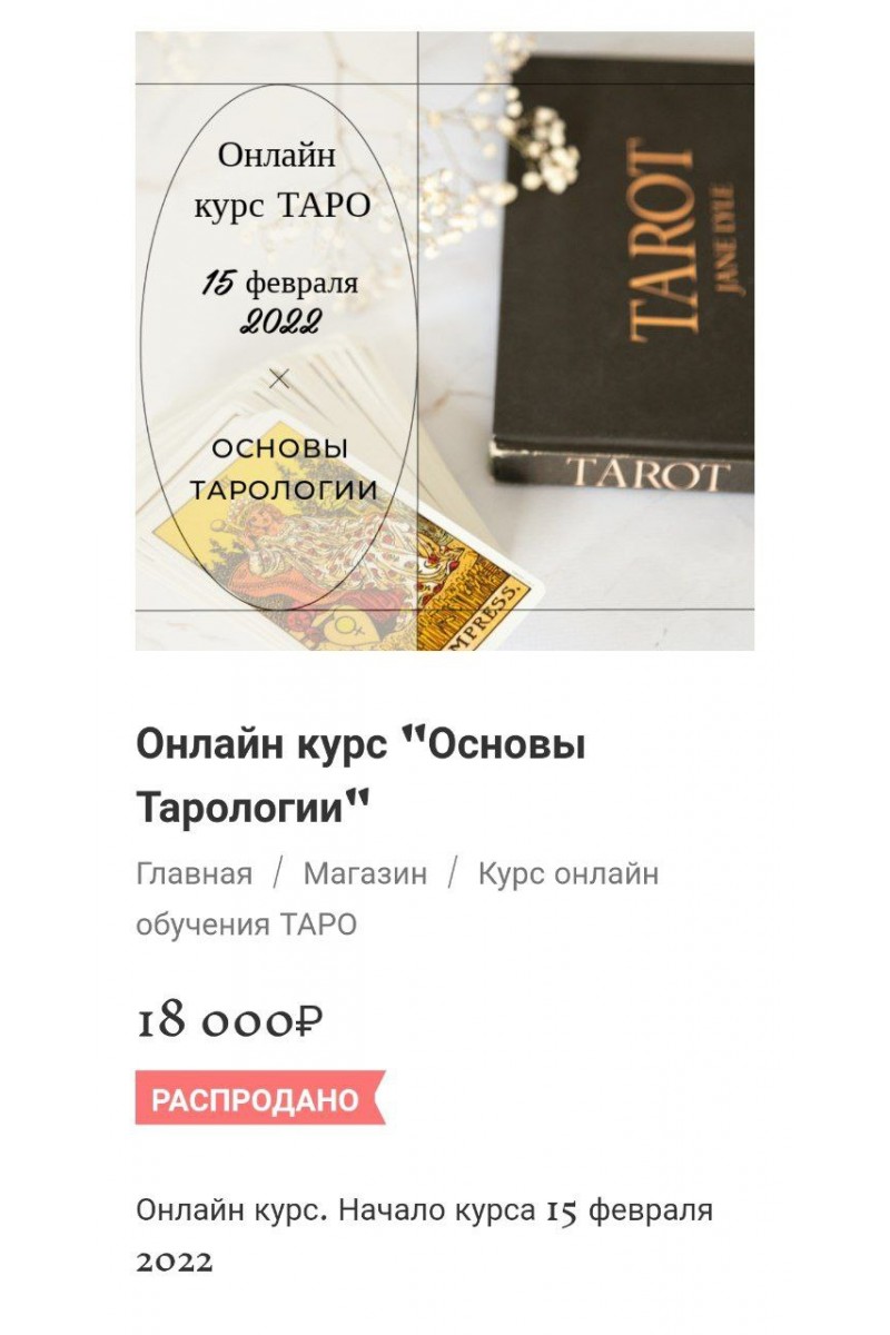 Онлайн курс обучения по работе с картами ТАРО. Длительность 5 недель. Состоит: 5 групповых онлайн встреч в ZOOM (домашние задания и онлайн поддержка) 10 видео лекций в записи Полного методического пособия в PDF формате на 700 страниц Методический материал: Книга по значениям карт ТАРО в электроном виде. Видео лекции по системному значению ТАРО Презентации к каждому вебинару. Видео лекции по отдельным раскладам с подробным разъяснением. Практика Полностью весь материал будет загружен в ваш личный кабинет после начала курса