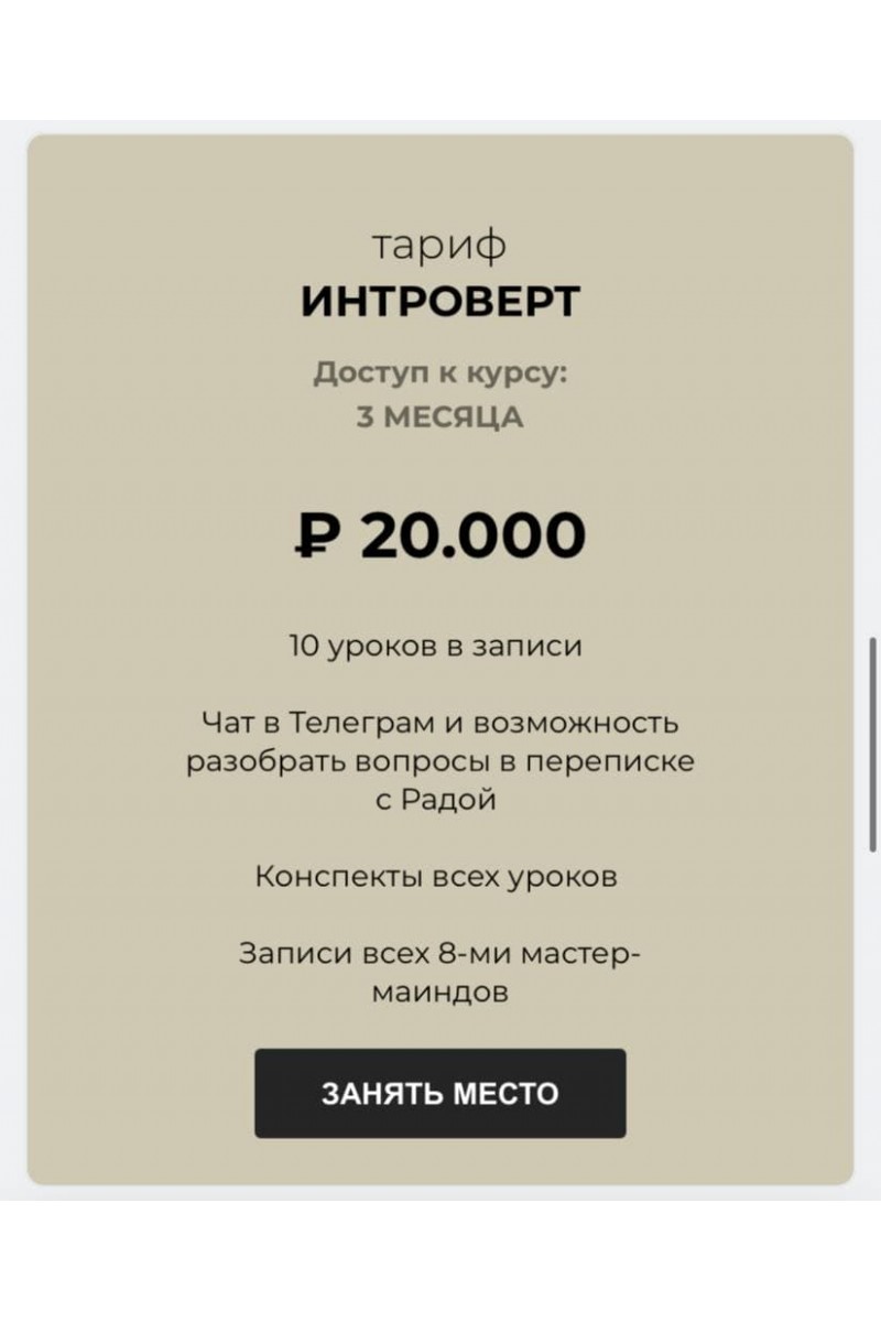 Вы получите: материалы тренинга о любви к себе и жизни "10 заповедей гедониста"10 уроков в записиКонспекты всех уроковЗаписи всех 8-ми мастер-маиндовКак построен тренинг:Первую неделю тренируем концентрацию, ведь без неё ничего не выйдетЗатем мы постепенно сепарируемся от другихИ только после уже приступаем к самому приятному - к самоанализу и навыкам гедонизма.Кратко о курсе:Конечно, мы все немного эмоциональные инвалиды, и поскольку это вроде как все произошло в детстве, то тут уже не разберёшь врожденные пороки от родительского вмешательства.И я хочу акцентировать, что это тренинг только для тебя и про тебя, мы будем сепарироваться от других, чтобы наконец осознать, где ты во все этом.Это очень объёмный и трудоёмкий тренинг, он займёт 2 месяца твоей жизни в активных тренировках.И скорее всего, ты захочешь пройти его повторно через год.Будет идеально, если ты уже освоил «Эмоциональный детокс» и нашёл зачатки своей структуры психики и наметки личных границ.Будь там, где ты естьНе накручивай про себяНе критикуйНе выдумывайВозжелайЗадавай вопросыОсознай ресурсСоздавай выборНайди мотивациюЭкономь эмоции
