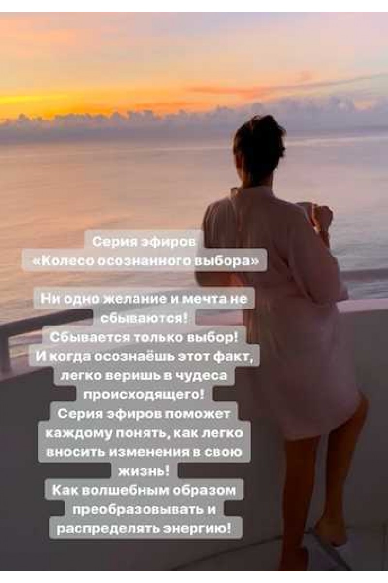 Здравствуйте,Серия эфиров.Колесо осознанного выбора.Ни одно желание и мечта не сбываются.Сбывается только выбор.И когда осознаешь этот факт, легко веришь в чудеса происходящего.Серия эфиров поможет каждому понять, как легко вносить изменения в свою жизнь.Как волшебным образом преобразовывать и распределять энергию.Эфиры в закрытой группе инстаграм.Тема : Колесо балансаПланирует провести серию эфиров.7 видео записей.
