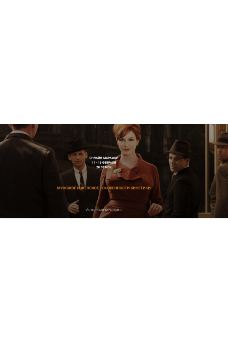 Онлайн-марафон14 - 16 Февраля20:00 МСКМужчины и женщины...Вечная тема притяжения и...Для непониманияпочему?Потому что не все, те кто ходит в платьях женщины.И не от всех в брюках веет мужественностью.Нет, ну конечно по формальным признакам мы понимаем, кто перед нами.И это зафиксировано в паспорте.Но часто глаз видит одно, а мозг что-то напрягает.Откроем вам страшную тайну: это что-то - неправильная кинетика!Наверное все слышали выражения "Мужик в юбке".Это как раз по нашей теме))) Внешность женская, а вот впечатление...Представьте: вы видите перед собой интересную особь противоположного пола, особь вам нравится и вы уже готовы влюбиться. И тут объект внимания встал/сел/взял чашку/открыл дверь, после чего у вас внутри будто что-то упало и разбилось.Ваше нутро почуяло нефертильность и интерес мгновенно улетучился...Чтобы так не испортить впечатление о себе, сохранить привлекательность для партнёра на долгие годы, освойте истинно женские и истинно мужские движения, жесты и позы.Для кого марафон:-Для всех женщин, Для всех мужчин-Марафон - это короткий экскурс в кинетику, быстрое овладение конкретными навыками и немедленное применение их на практике.-Если вы привыкли к системным знаниям - для этого есть живые тренинги и видеоуроки.-Марафон же подходит тем, кто впервые прикасается к теме кинетики, либо тем, кто хочет быстро прокачаться в одном направлении.