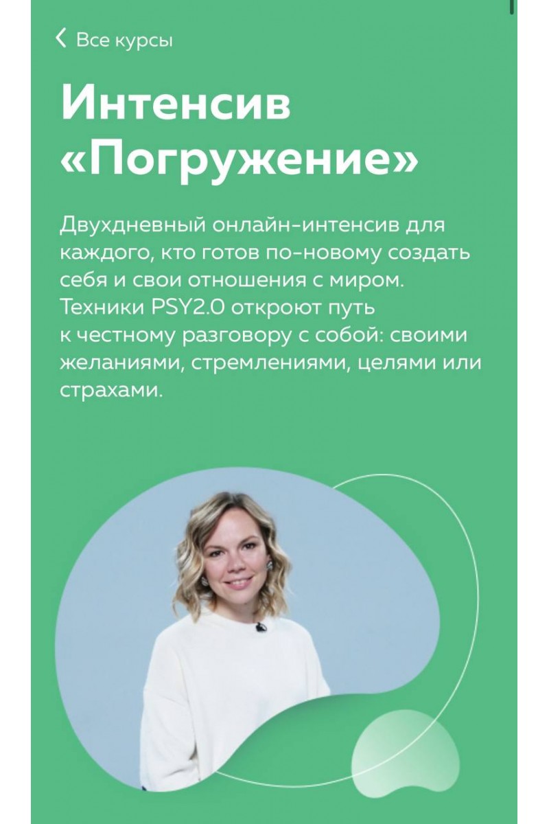 На интенсиве «Погружение» вы узнаете:— как в организме связаны мозг, тело и психика;— как использовать адаптационные реакции организма для создания той жизни, которой вы хотите жить;— как наладить контакт с телом и чувствами;— как изменить негативное восприятие реальности и трансформировать болезненные реакции.Интенсив будет полезен всем, кто хочет проработать запросы, касающиеся:ОтношенийВы не можете разрешить конфликты с возлюбленными или окружениемЗдоровьяВас беспокоит телесная симптоматика и болезни, например — аллергия, астма, дерматит, мигреньМотивацииВы чувствуете, что пора переходить к решительным действиям, но не знаете, какСамооценки и самореализацииВы не осознаете свои истинные желания, прячете эмоции, не чувствуете внутренний ресурсВыгоранияВам кажется, что жизнь потеряла краски, и все лучшие моменты уже в прошломСамоопределенияВы понимаете, что живете не своей жизнью, но продолжаете двигаться в привычном направлении
