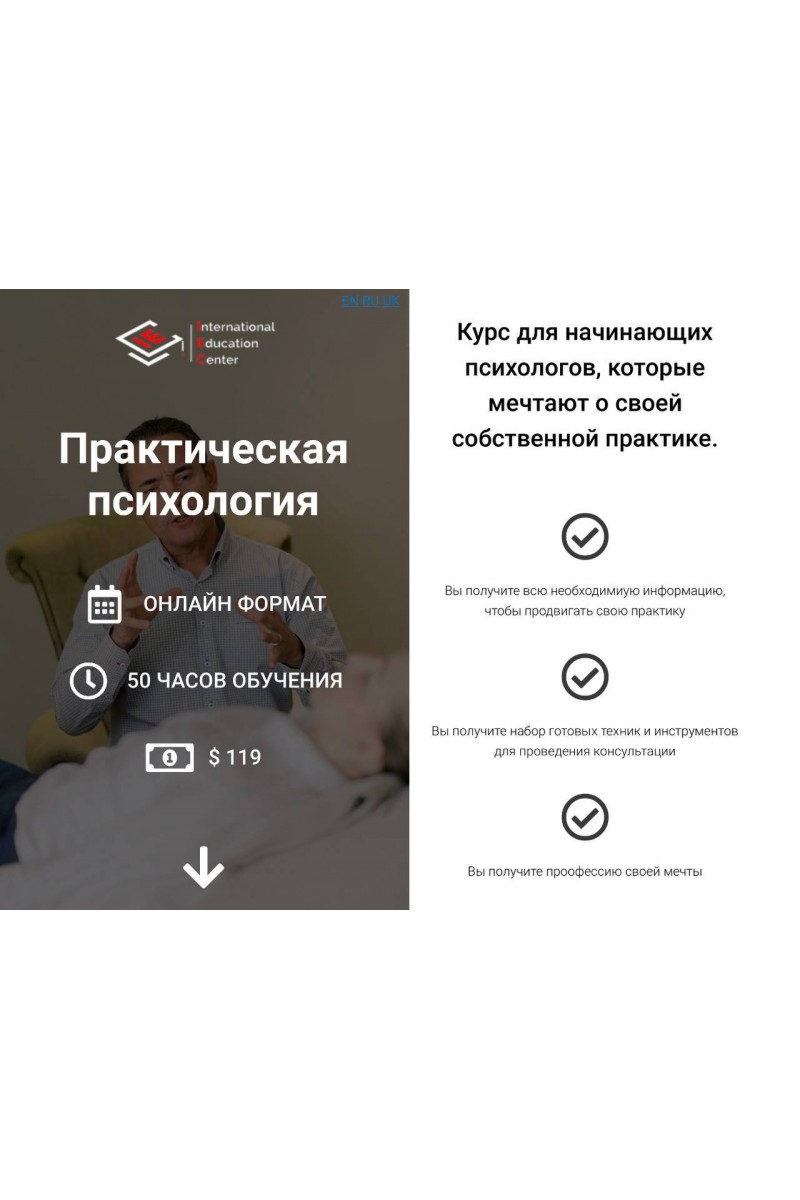 Курс для начинающих психологов, которые мечтают о своей собственной практике.Вы получите всю необходимиую информацию, чтобы продвигать свою практикуВы получите набор готовых техник и инструментов для проведения консультацииВы получите проофессию своей мечтыПрограмма курса18 занятий + коуч-сессия с преподавателями.50 часов обучения.Занятие № 1Поле компетентности психолога.Юридические аспекты деятельности. Организация процесса.Занятие № 2Теоретические подходы в психотерапии.Краткий обзор и основные понятия (психоанализ и психодинамический подход, бихевиоризм, когнитивный, гуманистический, диспозициональный)Занятие № 3Первый контакт с клиентомПравила первого телефонного разговора, первая встреча. Сеттинг. Современное представление о границах терапевтического процесса.Занятие № 4Первичное интервью.Оценка неизменяемого в истории клиента.Занятие № 5Понятие о психологических защитах.Характерологические и ситуационные защитные реакции.Занятие № 6Основные понятия в Гештальт - терапии.Механизмы прерывания контакта.Занятие № 7Структура личности и ее понимание в основных направлениях психотерапииПсиходинамическое, гештальт, гуманистический подход.Занятие № 8Основы психиатрии и неврологии.Диагностика нарушений психики и особенности взаимодействия с клиентами, имеющими психические расстройства.Занятие № 9Современное представление о психо-сексуальном развитии ребёнка.Занятие № 10Понятие психотравма.Виды. Диагностика. Пути терапевтирования.Занятие № 11Основные запросы в семейной терапии.Семья на приёме. Особенности и правила работы.Занятие № 12КризисыНенормативные, нормативные, динамика развития,суицидальный, семейный кризис, стратегии работы с внутренней феноменологией.Занятие № 13Горевание и эффективная работа с ним.ПТСР.Занятие № 14Самооценка.Занятие № 15Психология зависимостей.Химические и нехимические зависимости. Понятие о созависимости. Особенности личности зависимых пациентов. Подходы к терапии.Занятие № 16Речь психолога.Инструменты работы.Занятие № 17Эмоции и их функции.Занятие № 18Границы и их нарушения.Созависимые и контрзависимые отношения. Понятие о зрелой паре.
