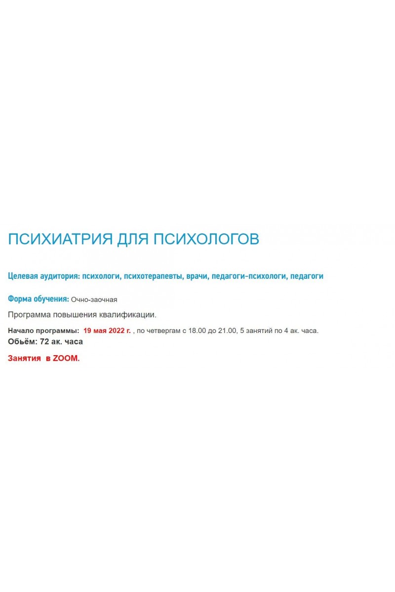 Практический курс по психиатрии для психологов и психотерапевтов, желающих расширить свой методический и практический инструментарий.