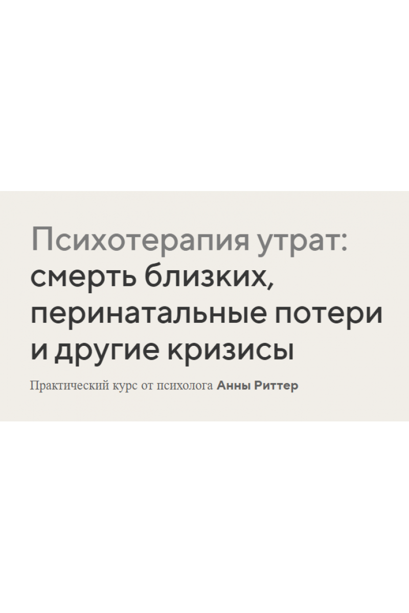 Курс "Психотерапия утрат: смерть близких, перинатальные потери и другие кризисы" от психолога Анны Риттер поможет начинающим и опытным психологам с уверенностью брать любые запросы без страха не справиться или разрушиться, повысить эффективность терапевтической работы.