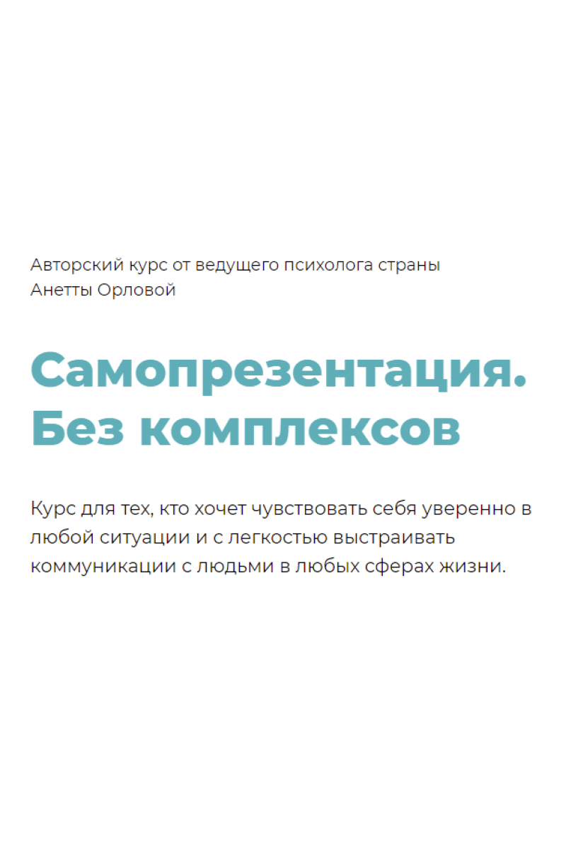 На курсе вы узнаете:Что такое самопрезентацияКак справляться с эмоциямиКак мимика влияет на наш образКак работать с голосом и дыханиемКак перестать волноваться о том, что подумают о вас людиКак создать правильный имиджКакие страхи нам мешают говоритьКак правильно вести себя в кадреКУРС СОСТОИТ ИЗ 12 ОСНОВНЫХ УРОКОВУрок 1 — Что такое самопрезентация?Сделаем первый шаг на пути к познанию себя и своей новой самопрезентации. Определим свои цели и задачи для работы на курсе.Урок 2 — Маршрутная карта: оси самопрезентацииОпределим текущее положение по осям самопрезентации, определим план действий для движения к желаемой цели по осям самопрезентации.Урок 3 — Самооценка и самопрезентация: хвалить или не хвалитьВыполним упражнения на ресурс, а также поработаем с основой новой самопрезентации.Урок 4 — Мышление и самопрезентация: страхи заявить о себе смелоОпределим и проработаем страхи самопрезентации.Урок 5 — Самопрезентация и целостный имидж + доп. урок от эксперта-стилистаНа практике проанализируем целостный имидж героев.Урок 6 — Имидж — влияние цветаПродолжим работу со своей новой самопрезентацией, подготовим свой образ для ближайшей самопрезентации.Урок 7 — Язык тела и самопрезентацияОпределим свой язык тела в кадре, посмотрим на движения, мимику, жесты.Урок 8 — Публичное выступление: первое впечатлениеНаучимся анализировать самопрезентацию в соцсетях и публичных выступлениях, отмечать основы самопрезентации персонажей в соцсети.Урок 9 — Публичное выступление: инструкция по применениюЗапишем первую самопрезентацию с учетом полученных знаний и навыков, поработаем с практическими упражнениями для подготовки к публичным выступлениям.Урок 10 — Голос и самопрезентацияВводим новые практические упражнения в ежедневные действия, учимся слушать и слышать свои эмоции и тело.Урок 11 — Урок-практикаЗаписываем видео-представление и смело заявляем о себе!Урок 12 — Личный магнетизмПознакомимся с лайфхаками: как стать человеком, притягивающим внимание и взгляды!