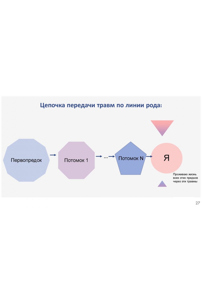Курс дает представление о теории, технике и практике психологической работы с трансгенерационной передачей травмы. Рассматриваются основные подходы к проблеме трансгенерационной передачи семейного опыта (психоаналитический, экзистенциальный, трансгенерационный). Анализируется роль трансгенерационного фактора в формировании жизненного сценария, а также обозначаются наиболее актуальные вопросы в рамках данной проблематики.