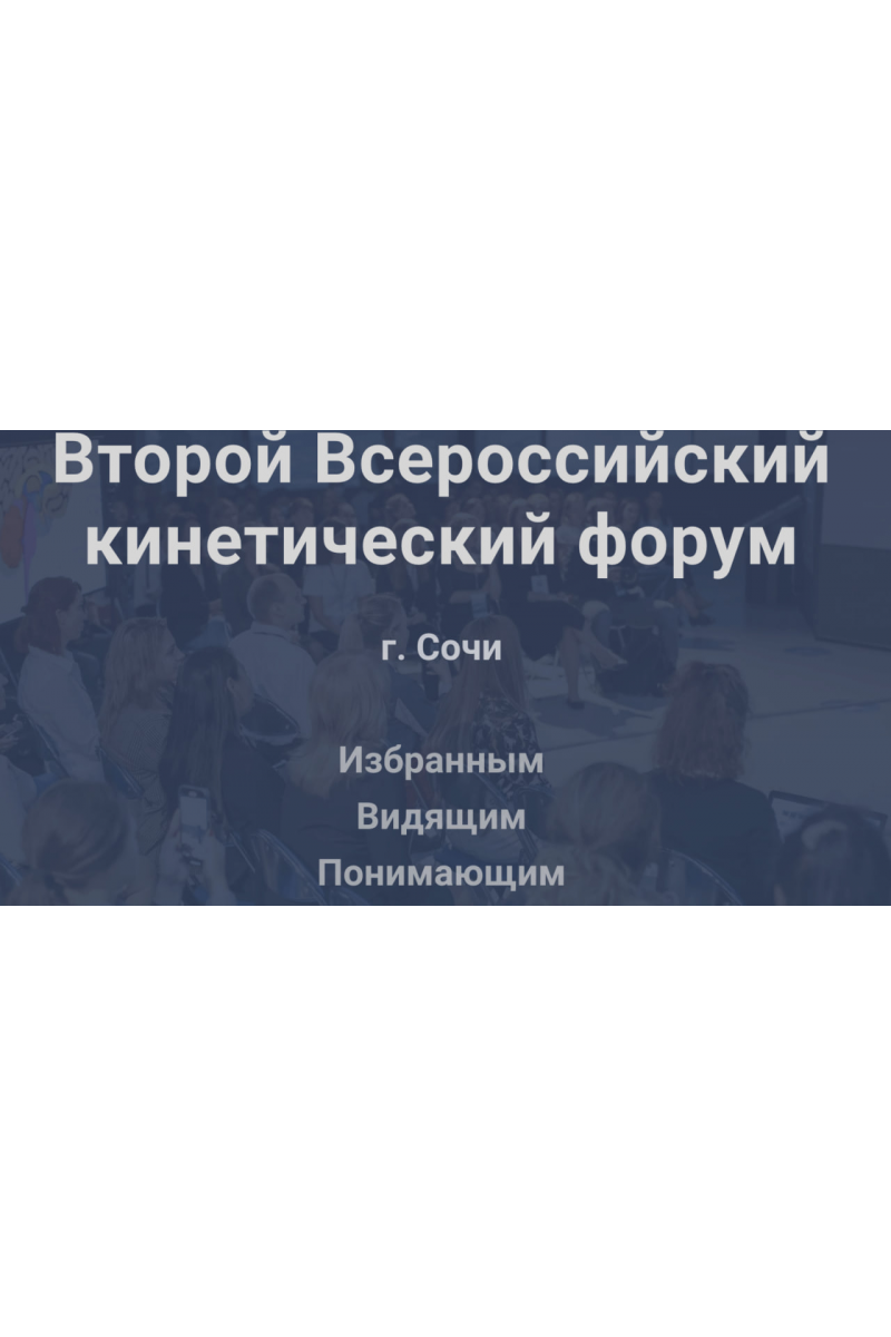 Второй Всероссийский кинетический форумг. СочиИзбранным Видящим ПонимающимВ записи форумКинетический имиджУправление впечатлениемНевербальные коммуникацииМагия кинетики20 спикеровКинетики со всей страныАмбассадоры Школы кинетического имиджа