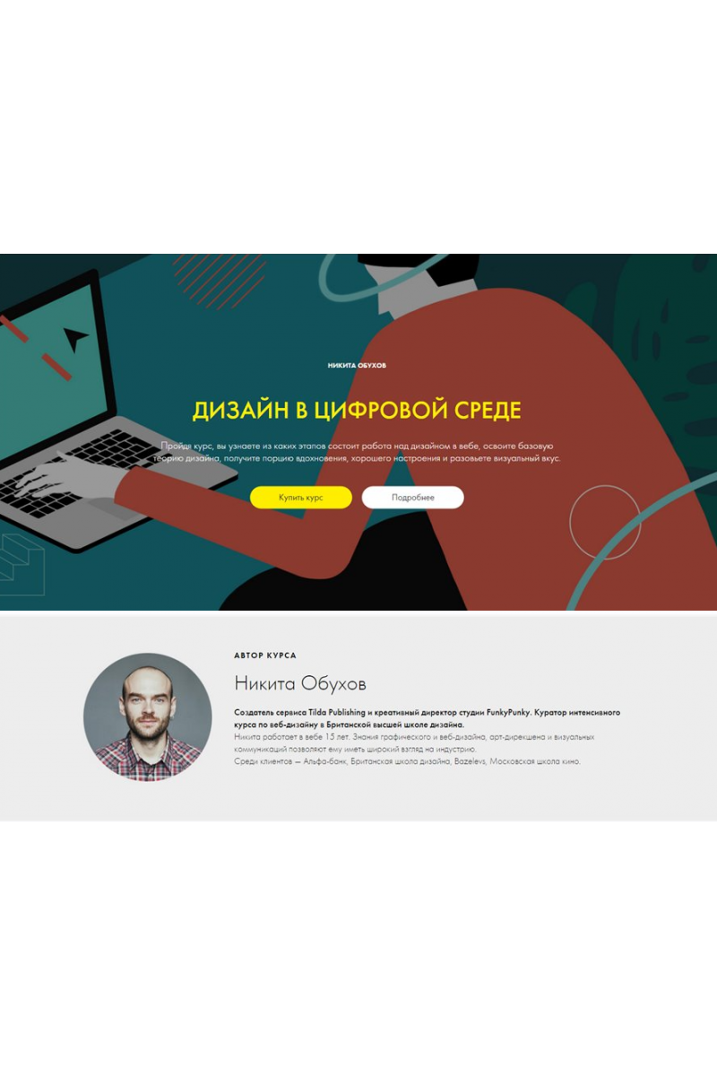 НИКИТА ОБУХОВДИЗАЙН В ЦИФРОВОЙ СРЕДЕПройдя курс, вы узнаете из каких этапов состоит работа над дизайном в вебе, освоите базовую теорию дизайна, получите порцию вдохновения, хорошего настроения и разовьете визуальный вкус.Мы создали библиотеку знаний по веб-дизайну. Учебник нового формата, в котором знания и опыт, накопленные за 15 лет работы в вебе, систематизированы и упакованы в 20 увлекательных лонгридов, написанные простым языком. Вы научитесь делать сайты для себя или для клиентов.АВТОР КУРСАНикита ОбуховСоздатель сервиса Tilda Publishing и креативный директор студии FunkyPunky. Куратор интенсивного курса по веб-дизайну в Британской высшей школе дизайна.Никита работает в вебе 15 лет. Знания графического и веб-дизайна, арт-дирекшена и визуальных коммуникаций позволяют ему иметь широкий взгляд на индустрию.Среди клиентов — Альфа-банк, Британская школа дизайна, Bazelevs, Московская школа кино.