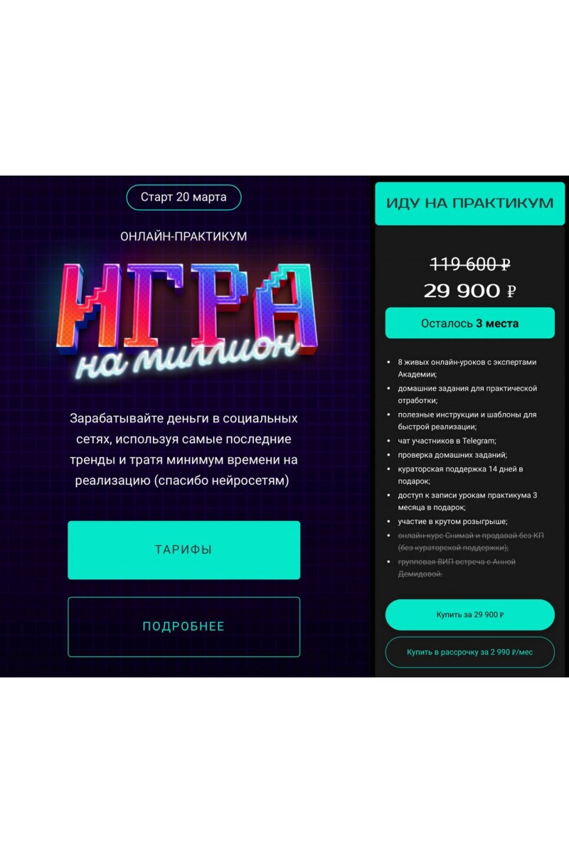 Игра на миллион. Анна Демидова, SMM-Академия Михаила Христосенко