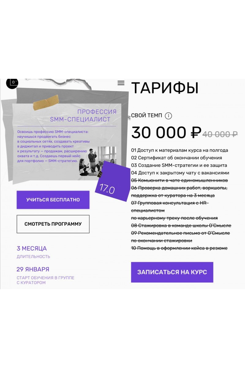 Освоишь профессию SMM-специалиста: научишься продвигать бизнес в социальных сетях, создавать креативы в диджитал и приводить проект к результату — продажам, расширению охвата и т.д. Создаешь первый кейс для портфолио — SMM-стратегию.Чему ты научишьсяРазвивать бизнес в социальных сетях. Создавать и реализовывать SMM-стратегиюАнализировать проект, аудиторию, конкурентов и свою работу. Понимать особенности выбранной нишиГенерировать разноплановый контент, планировать и реализовывать его. Писать эффективные тексты, разрабатывать визуальный концепт, снимать, монтировать, дизайнитьПродвигать проект с помощью разных инструментов: посевы, таргет, коллаборации, контентОбщаться с клиентом, презентовать себя как специалистаПрограммаВводный модульАудит и анализЦелеполагание и kpiКоммуникация бизнеса с клиентомКреатив как способ продвижения соцсетейИнструменты продвижения в соцсетяхКак собрать и презентовать smm-стратегиюЮридические вопросы smm-специалистаСтарт работы smm-специалистаИтоговая работа