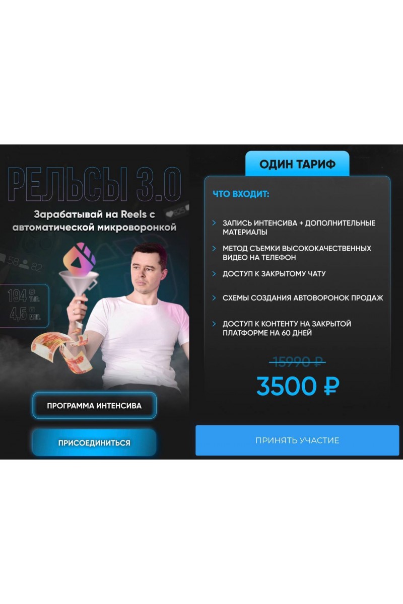 Зарабатывай на Reels c автоматической микроворонкойБЛАГОДАРЯ АВТОВОРОНКЕ ТЫ СМОЖЕШЬ ЗАРАБАТЫВАТЬ НА БЛОГЕ, ДАЖЕ КОГДА ТЫ СПИШЬ, ПОПОЛНЯТЬ БАЗУ ПОДПИСЧИКОВ И ДЕЛАТЬ REELS HE ПРОСТО ТАКНАУЧИСЬ ЗАРАБАТЫВАТЬ HA REELS C ABTОВОРОНКОЙРецепт простой - Упаковываем блог, создаем микро-автоворонку и наливаем в нее трафик через Reels. Система работает, как часы 24/7 продажи товаров и услуг происходят на автомате без твоего участия.Фишка в том, что такая микро воронка может работать довольно долго и не требовать никаких вмешательств На моем аккаунте такая микро воронка работает уже второй год, все это время она генерирует продажи моих продуктов, пока я занят своими деламиТЕБЕ НЕ НУЖНО БУДЕТ:1 Набирать огромную команду2 Осваивать сложные инструменты3 Танцевать с бубном с закрытыми глазамиТЫ ПРОСТО БЕРЕШЬ ГОТОВУЮ СХЕМУ АВТОВОРОНКИ, ЗАПУСКАЕШЬ НА НЕЕ ТРАФИК С REELS И ПОЛУЧАЕШЬ АВТОНОМНЫЙ МЕХАНИЗМ ПО ЗАРАБОТКУПРОГРАММА ИНТЕНСИВА:БЛОК 1ОСНОВЫ ОСНОВ1. КАК УСТРОЕН МИР REELSВ самом начале ты узнаешь, как вообще устроена Инста и ее видеофлагман Reels.Получишь всю исчерпывающую информацию о работе алгоритмов инсты и модели поведения пользователей. Это база, которая не меняется, на ней будем выстраивать стратегию продвижения2. КОМУ И ЧТО ПРОДАЕМЗдесь ты попадешь в самый ответственный момент во всем процессе продвижения того что ты хочешь продавать.Ты узнаешь, как провести исследование целевой аудитории, что позволит тебе собр информацию для создания продукта, за который клиент готов будет заплатить свои деньги.БЛОК 2ПРОИЗВОДСТВО REELS1. ЧТО СНИМАТЬ И ГДЕ БРАТЬ ИДЕИТебе больше не нужно выдавливать из себя идеи, которых нет.Разберем самые популярные жанры коммерческих Reels и научишься анализировать ролики, чтобы понять причину их популярности и перенести на свои видео.2. ПРОДАКШНТы получишь все инструменты по созданию качественных видео для Reels.Первым делом освоишь качественную сьемку видео на телефон, получишь малобюджетный набор для сьемки голливудских, прости господи, видео в любых условиях.Я покажу, как это сделать даже с совсем маленьким бюджетом. Здесь же освоим быстрый монтаж видео прямо на телефоне3. ЦЕПЛЯЮЩИЕ ЗАГОЛОВКИ И ТЕКСТЫТы познакомишься копирайтингом, который позволит тебе писать продающие тексты для роликов.Ты освоишь главный крючок, цепляющий Твоих будущих подписчиков в водовороте Reels- заголовки. И заодно научишься быстро писать такие тексты, после которых сложно будет пройти мимо и не заглянуть на аккаунт4. ДОПОЛНИТЕЛЬНЫЙ БУСТ ТВОИХ REELSПоймешь все адекватные способы дополнительного разгона твоих Reels, чтобы выжать из каждого Ролика максимум.Таких способов, как минимум 4, все они работают, как дополнительные лошадиные силы при разгоне твоего ролика.БЛОК 3МИКРО - ВОРОНКА НА ABTOMATE1. СХЕМА АВТОВОРОНКИЯ покажу тебе схему своей автоворонки, которая принесла мне около 5 млн рублей, работая 24/7.Ты увидишь всю схему этой воронки, которую сможешь повторить сам, либо передать технарю, который ее соберет по тех-заданию.После этого урока ты окночательно поймешь, как делать автоматические микроворонки, тебе останется только адаптировать ее под свой продукт,2. РЕАЛИЗАЦИЯ АВТОВОРОНКИЗдесь будет техническая часть создания воронки. Ты увидишь скринкаст процесса сборки автоворонки со всеми необходимыми сервисами.3. ФИНАЛОЧКАТут ты узнаешь, как монетизировать знания 